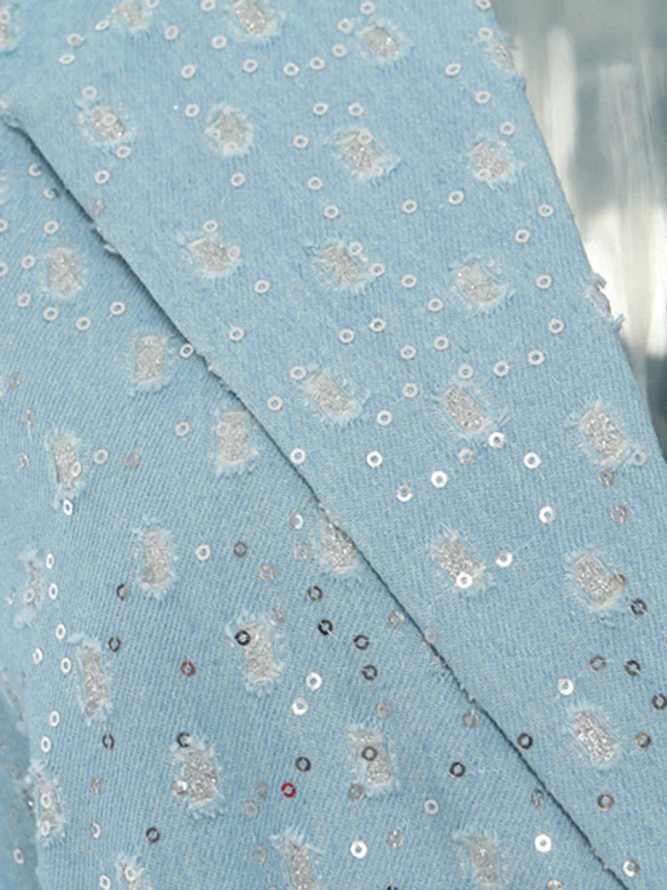 - Sequin Detailing: Adds a touch of glam to the raw denim look