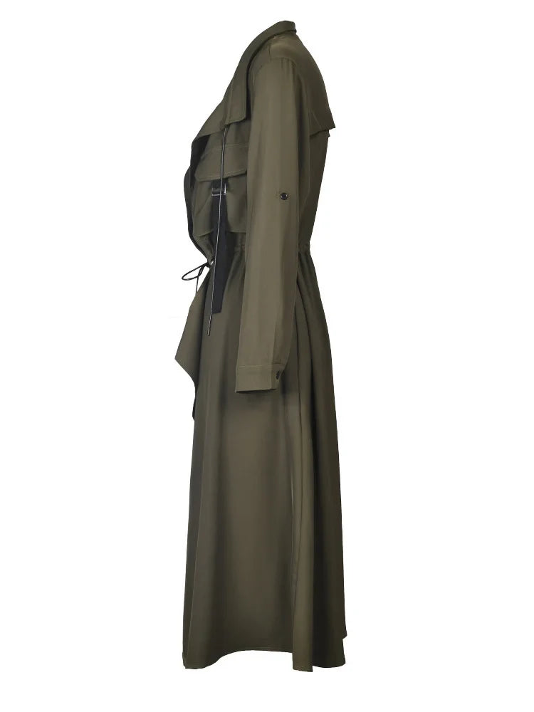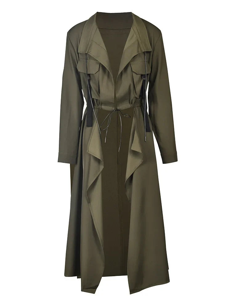 This trench coat redefines elegance with its unique front opening that drapes effortlessly. Made from luxurious. lightweight fabric. it offers a flattering fit while keeping you comfortable.