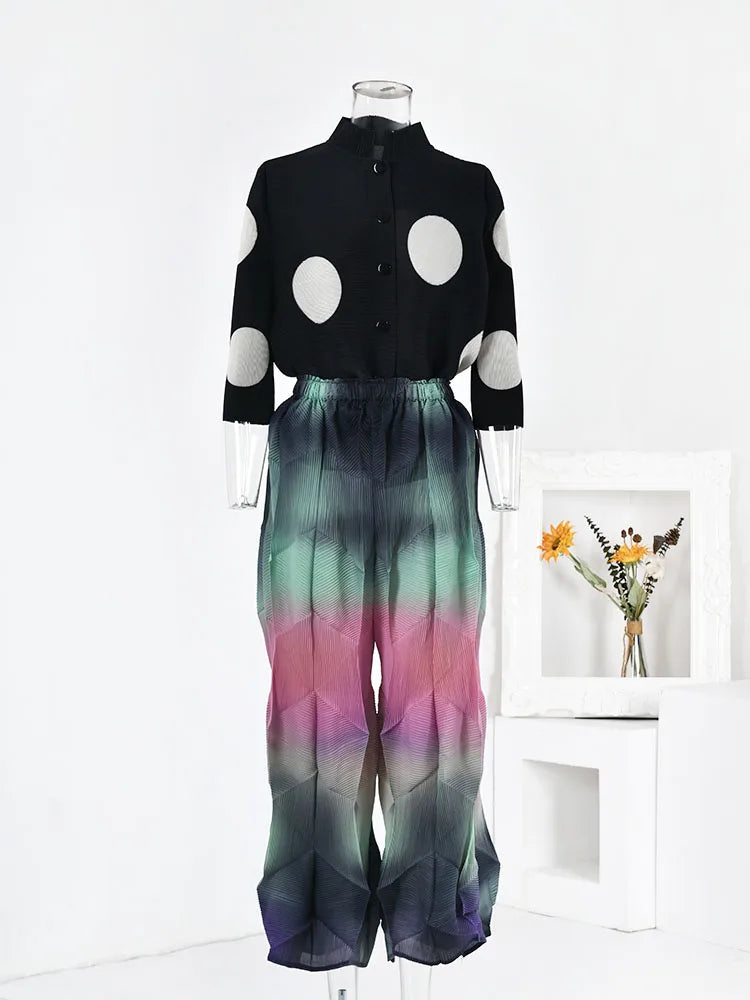 Introducing our Women's Elegant Chic Gradient Pleated Trousers. the epitome of sophistication and style. These trousers feature authentic Japanese pleats. adding a unique and elegant touch to your ensemble.