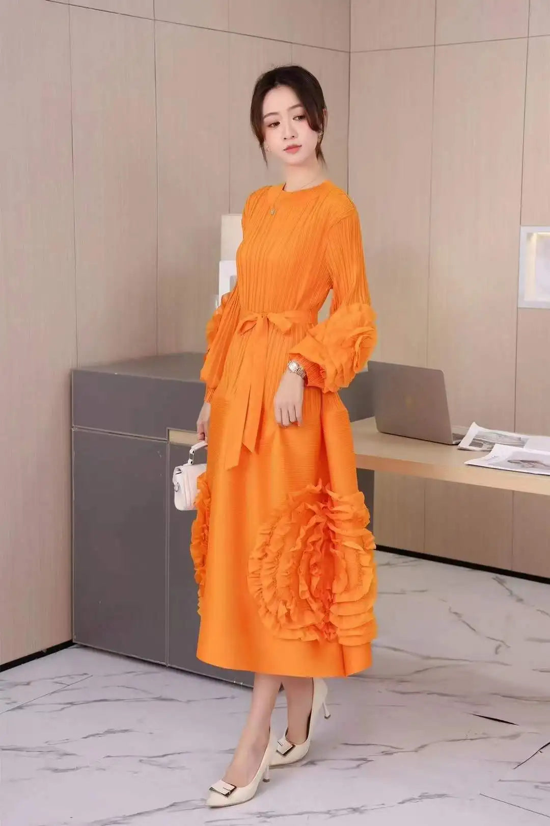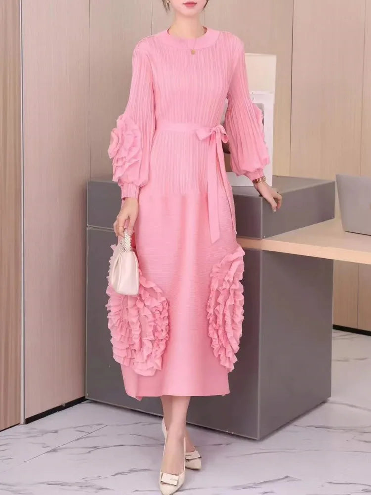 With delicate 3D floral accents and a versatile midi length. it blends comfort and elegance seamlessly. Perfect for any occasion. from meetings to social events.