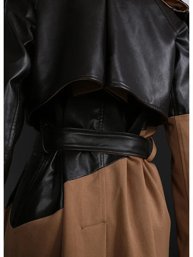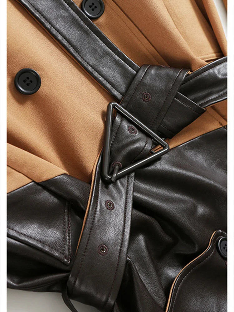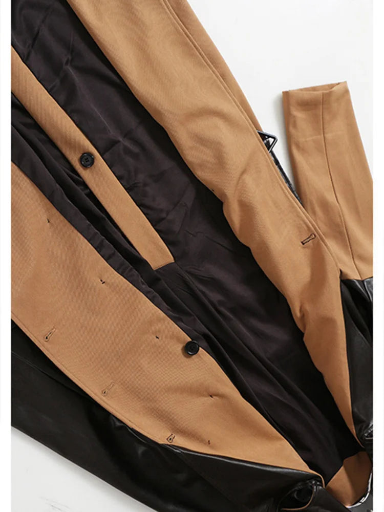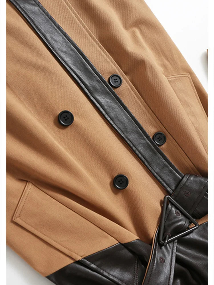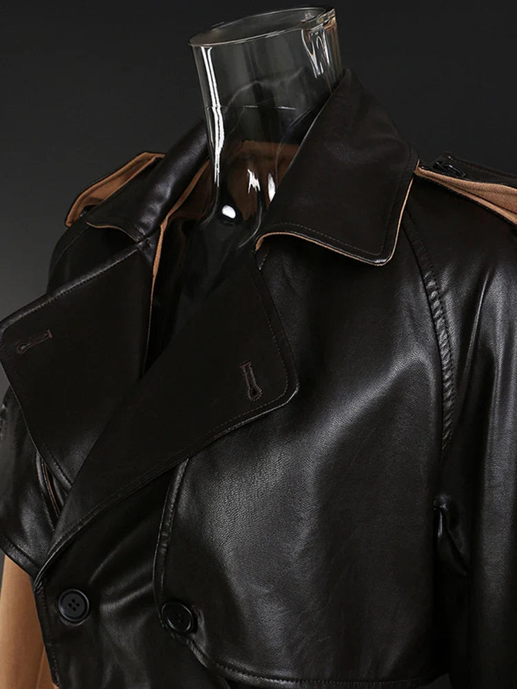 Effortlessly sophisticated. this oversized faux leather trench coat in a timeless khaki blend brings elegance and comfort together.