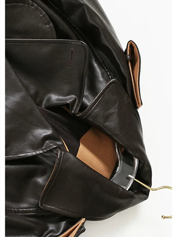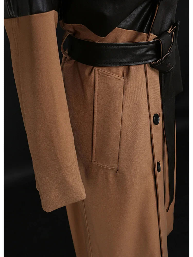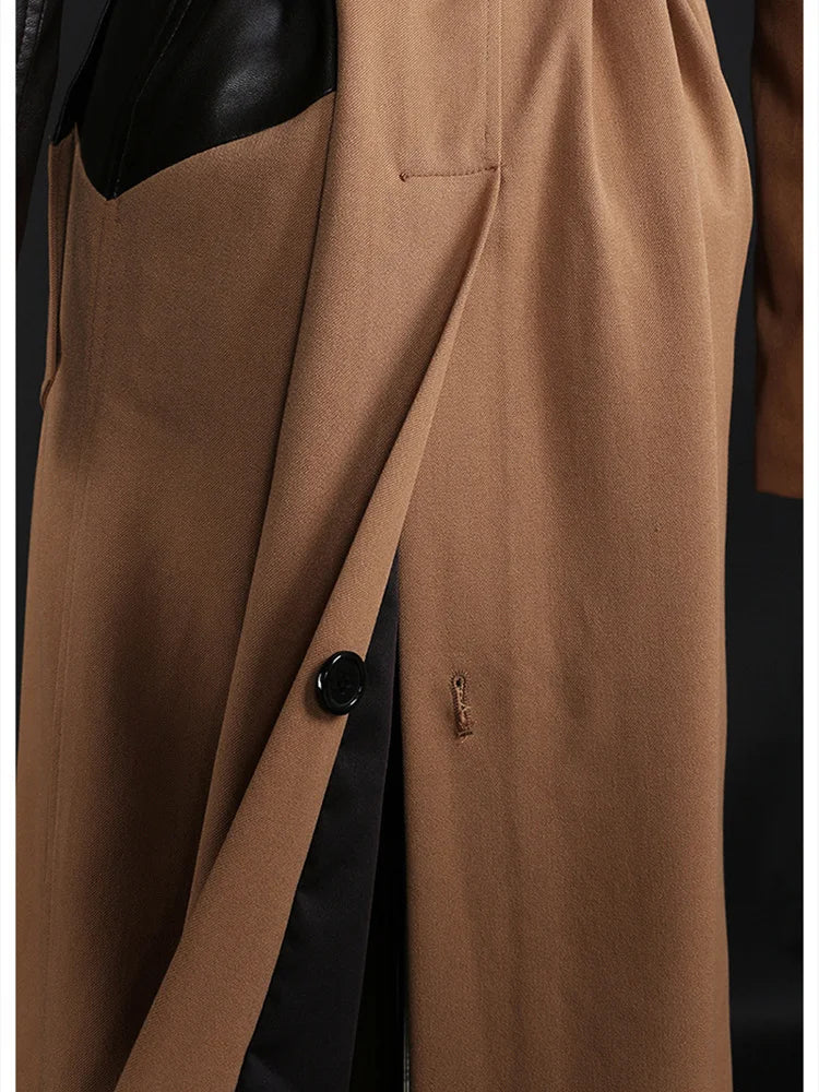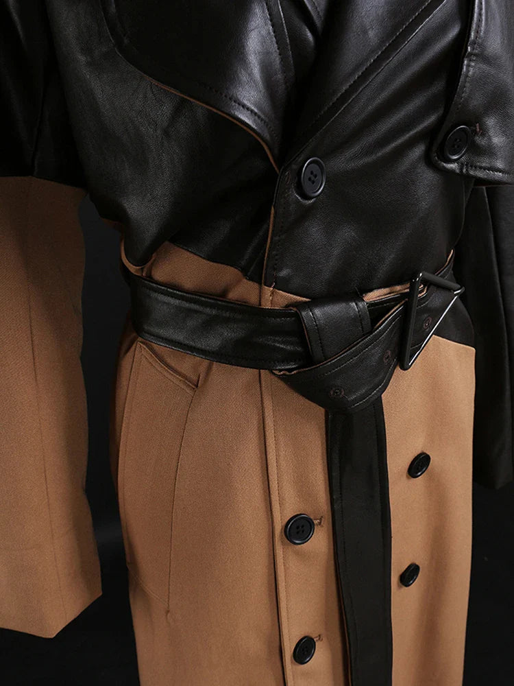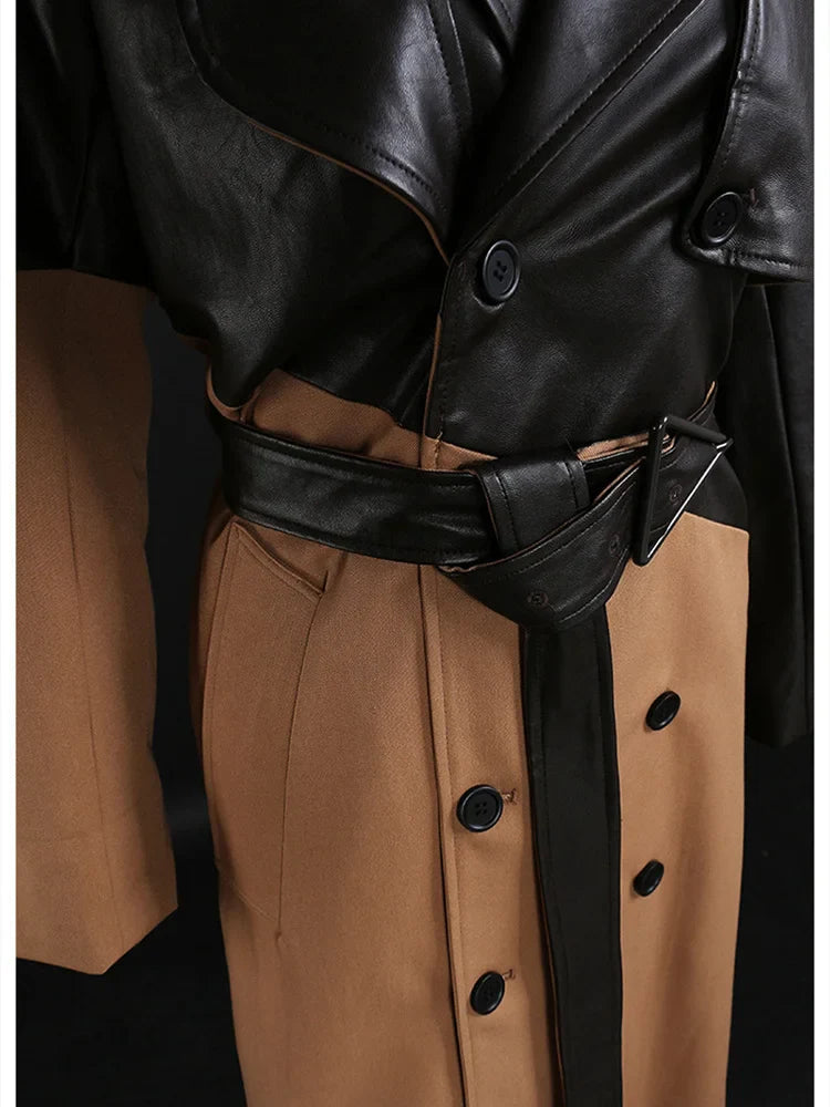 Effortlessly sophisticated. this oversized faux leather trench coat in a timeless khaki blend brings elegance and comfort together.