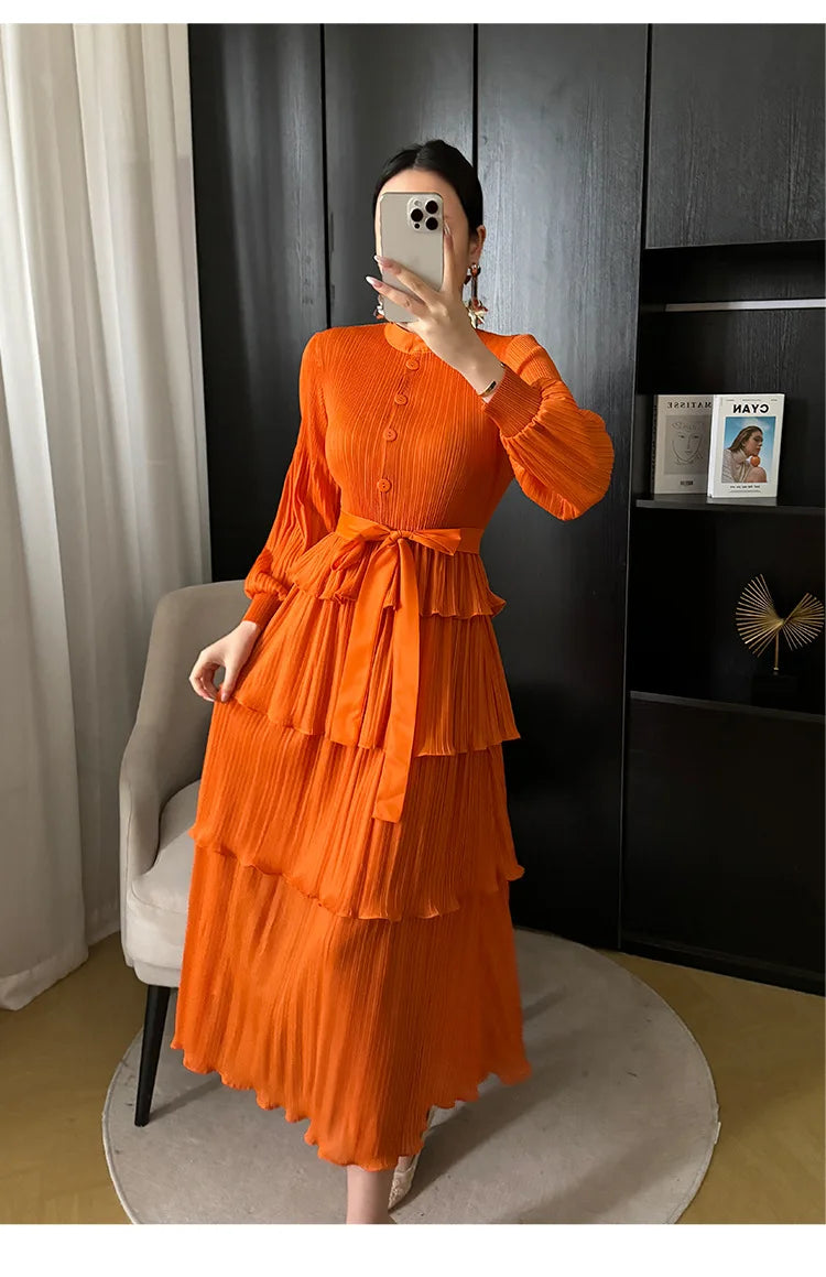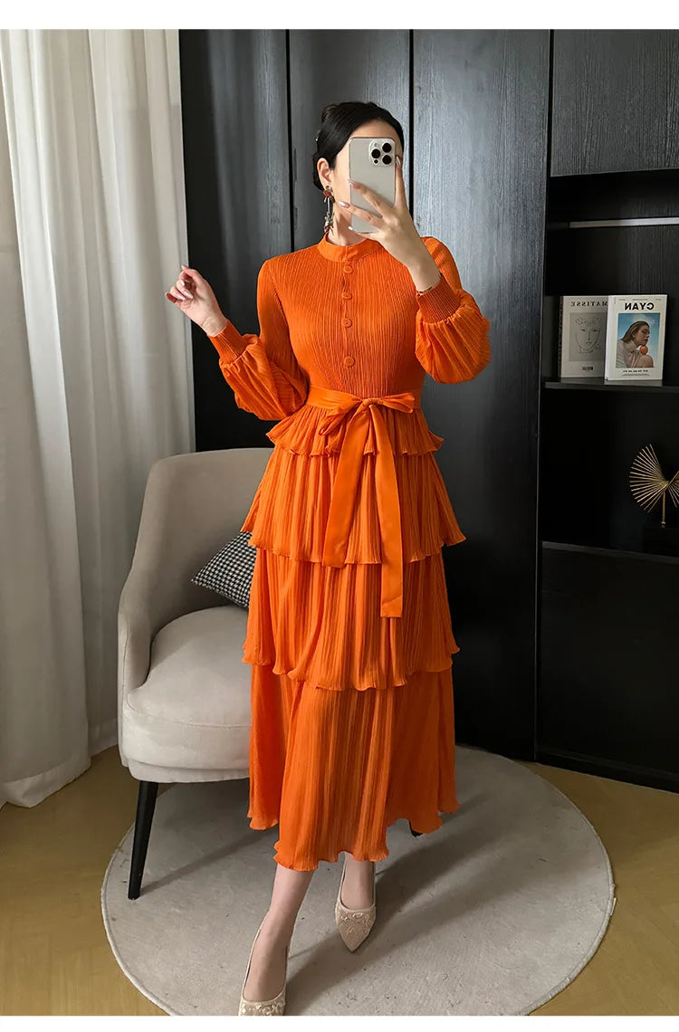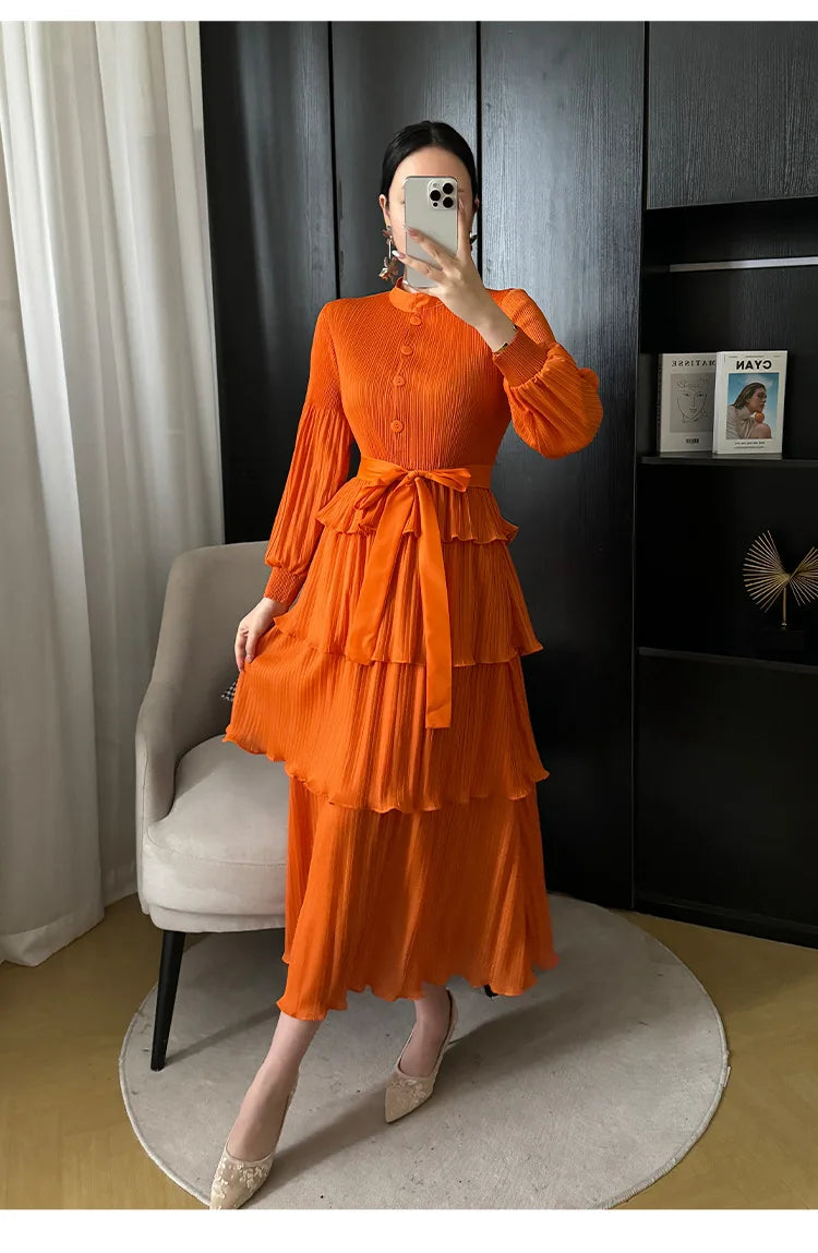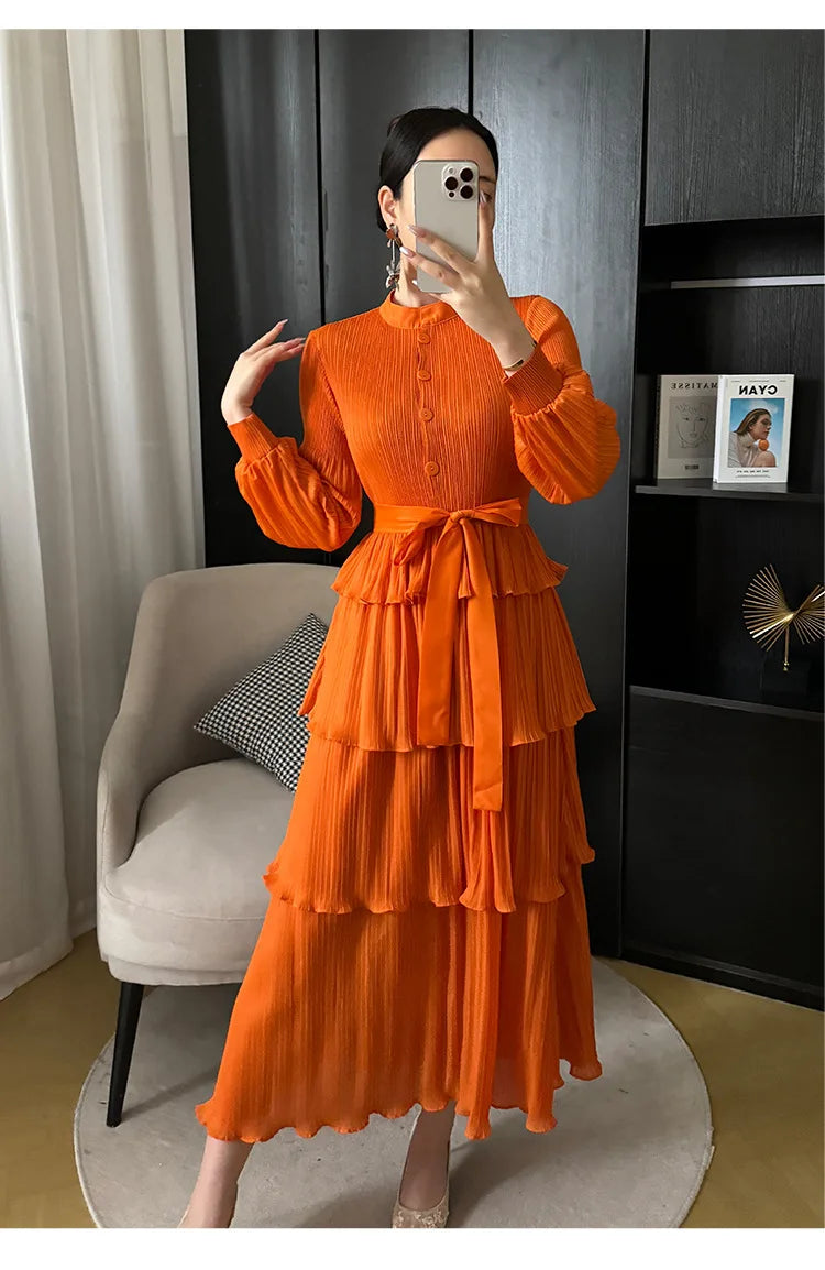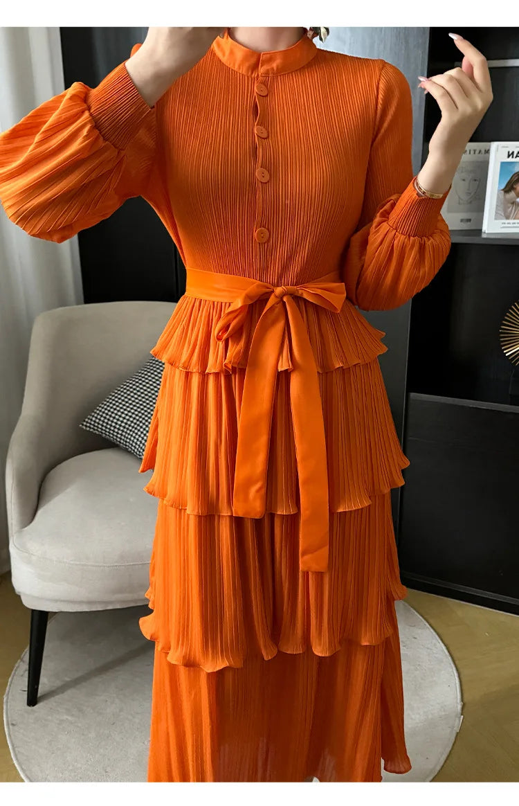 With its tiered pleating and elegant silhouette. it effortlessly blends modernity and grace. making it perfect for any occasion.