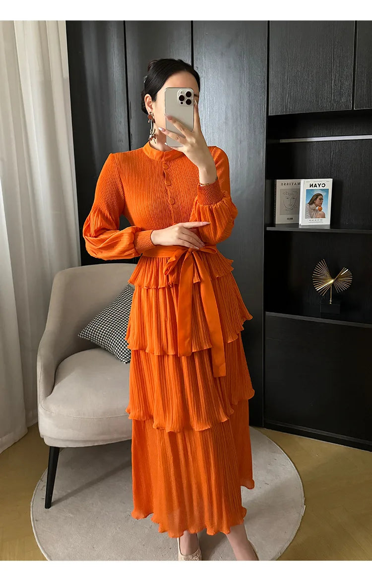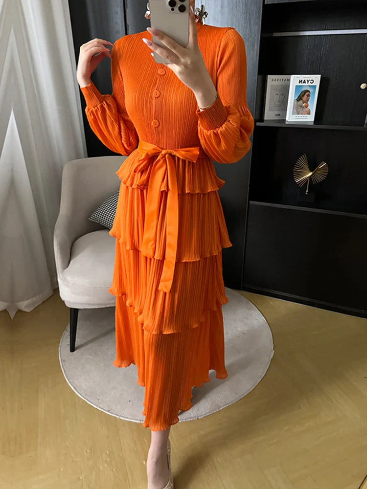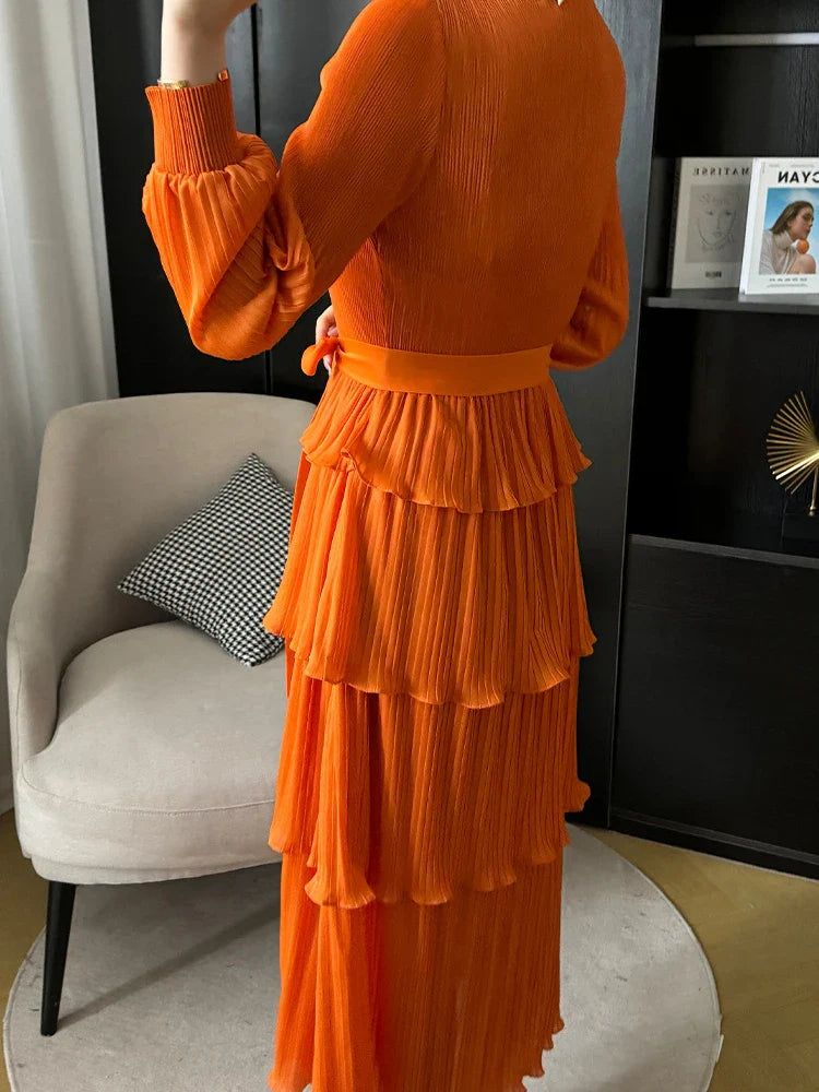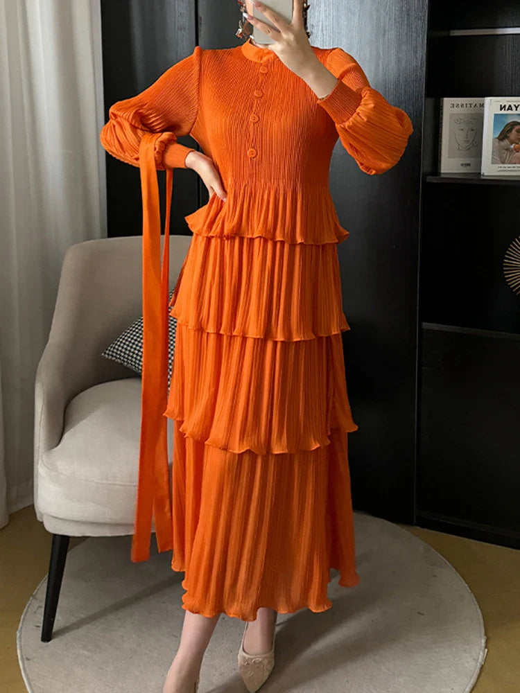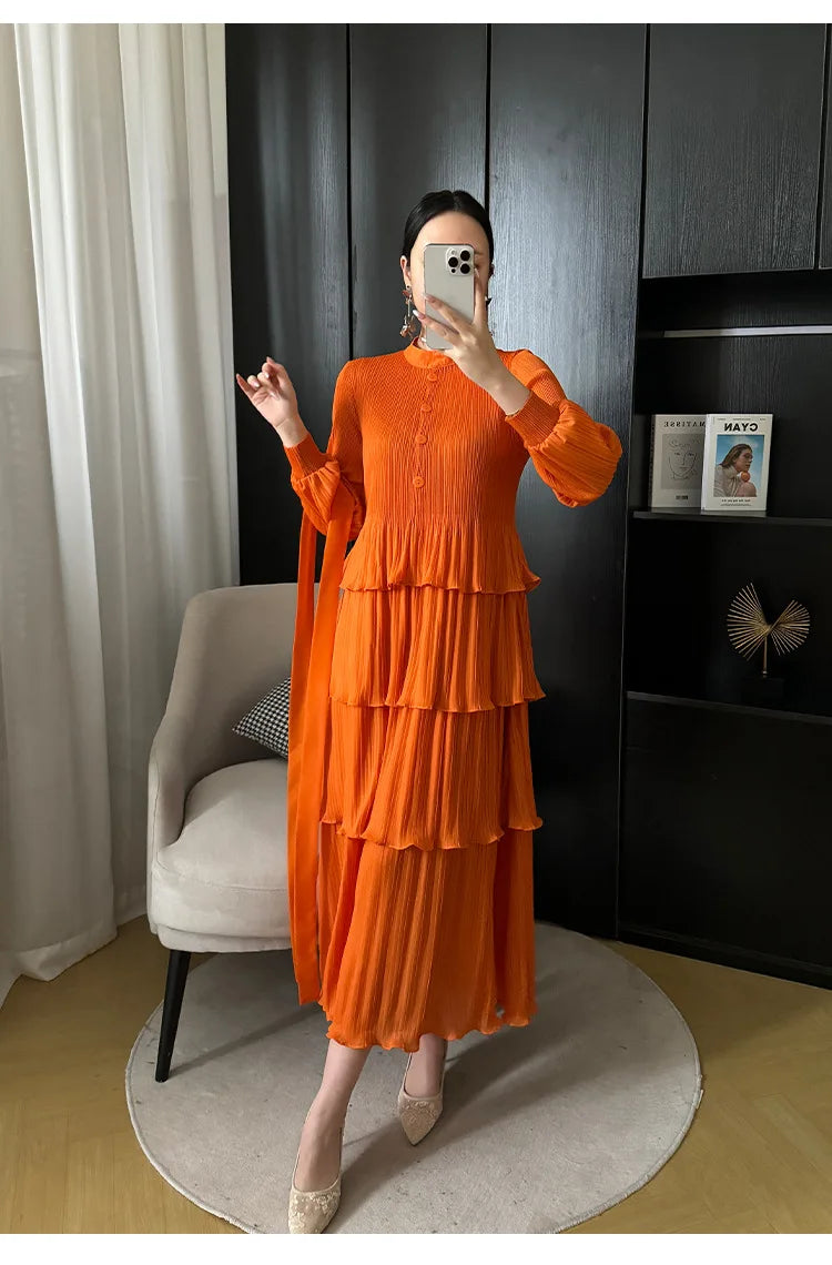 With its tiered pleating and elegant silhouette. it effortlessly blends modernity and grace. making it perfect for any occasion.