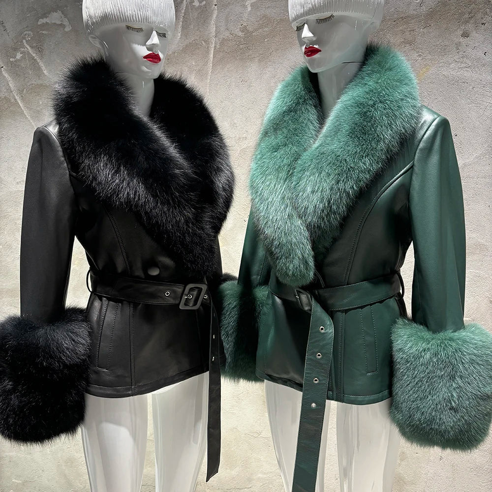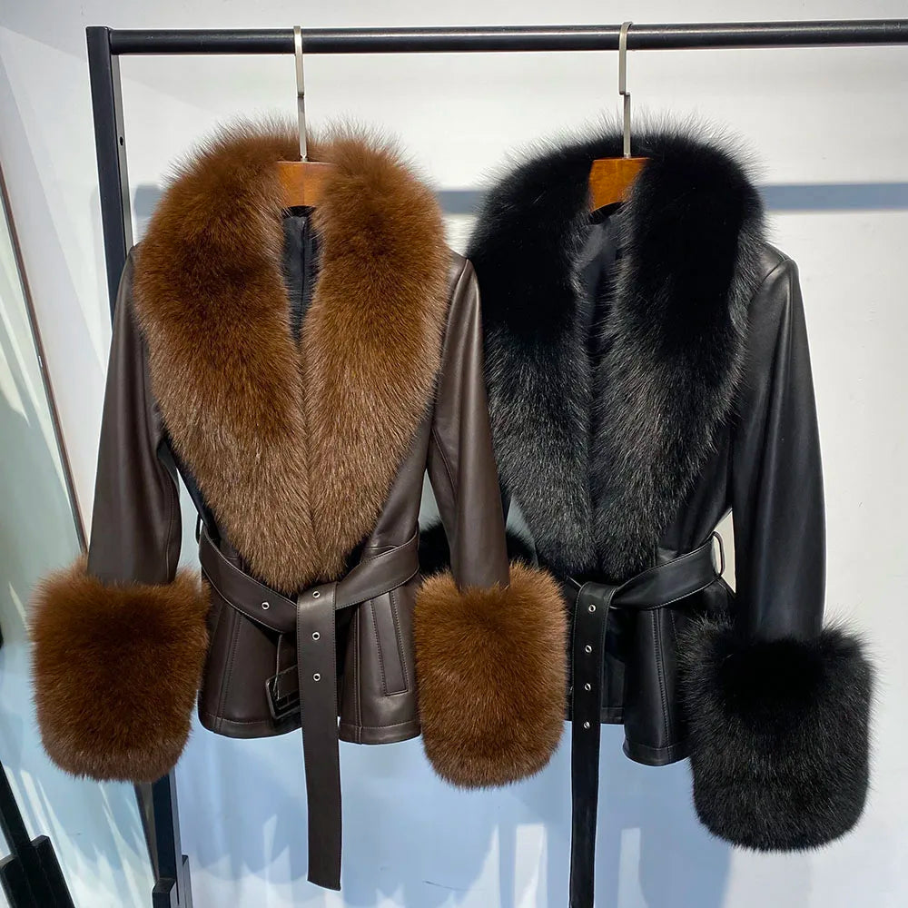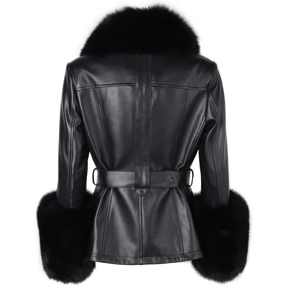 Women's Luxe Leather Winter Jacket with Fox Fur Collar