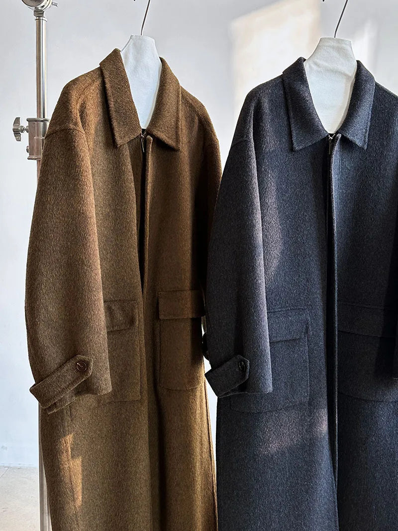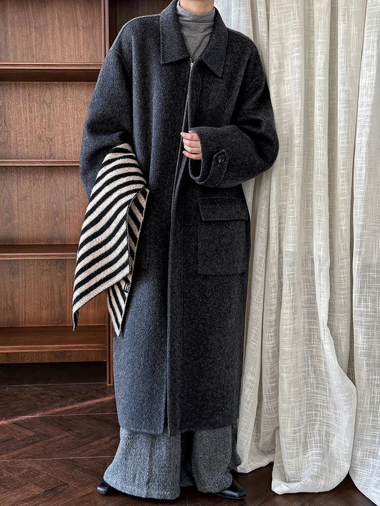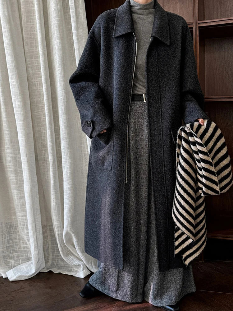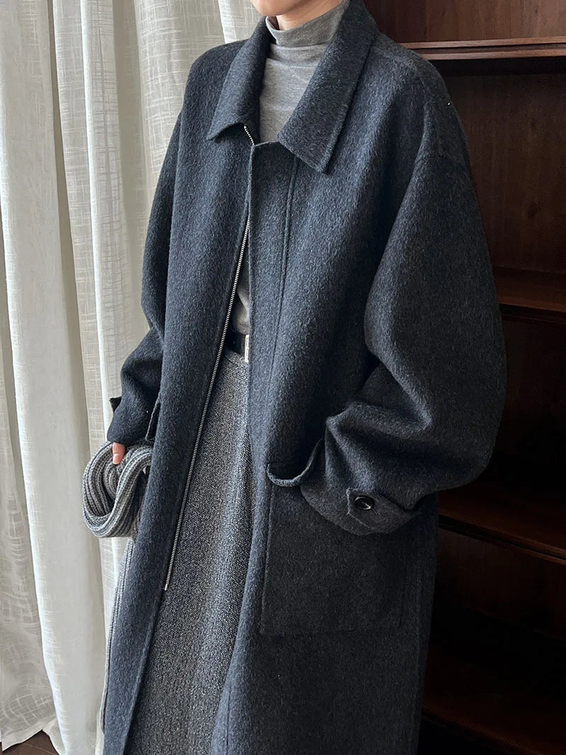 Women's Luxe Wool Long Zip-Up Oversized Coat