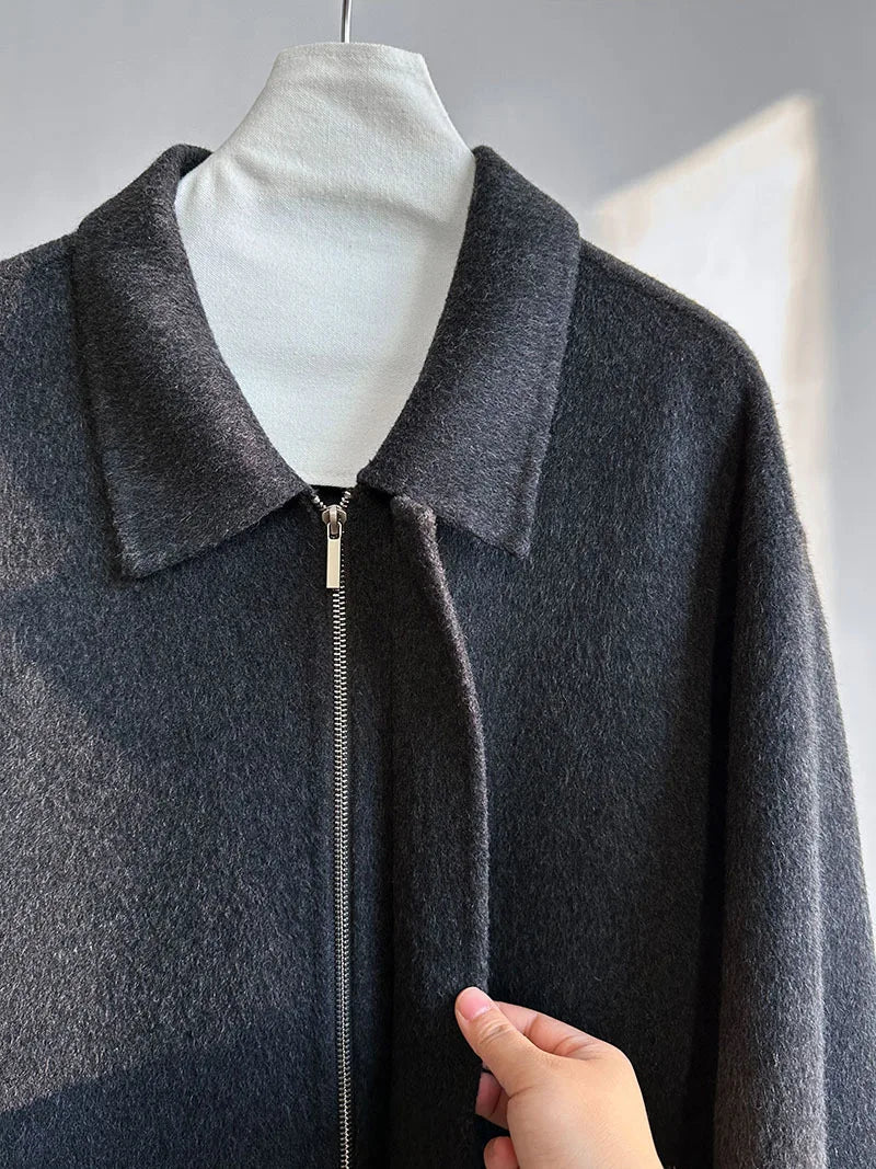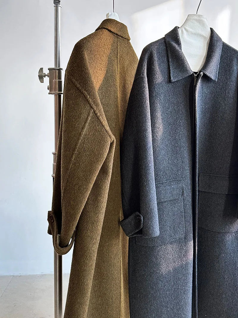 Wrap yourself in warmth and sophistication with this luxurious coat. Crafted from premium wool and cotton blends. it features an oversized cocoon silhouette. front pockets. and a convenient zip-up design.
