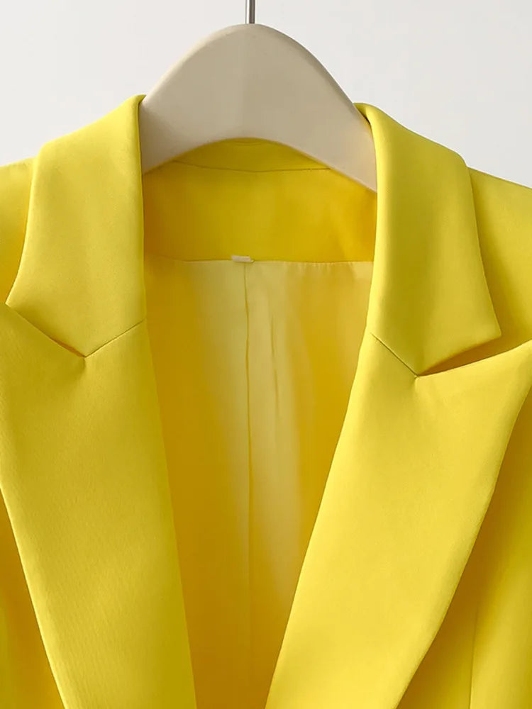 Women's Luxe Yellow Blazer with Purple Feathers