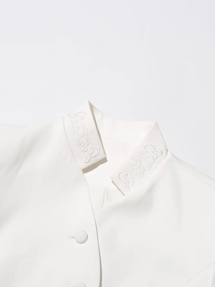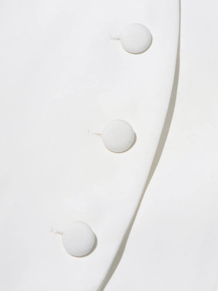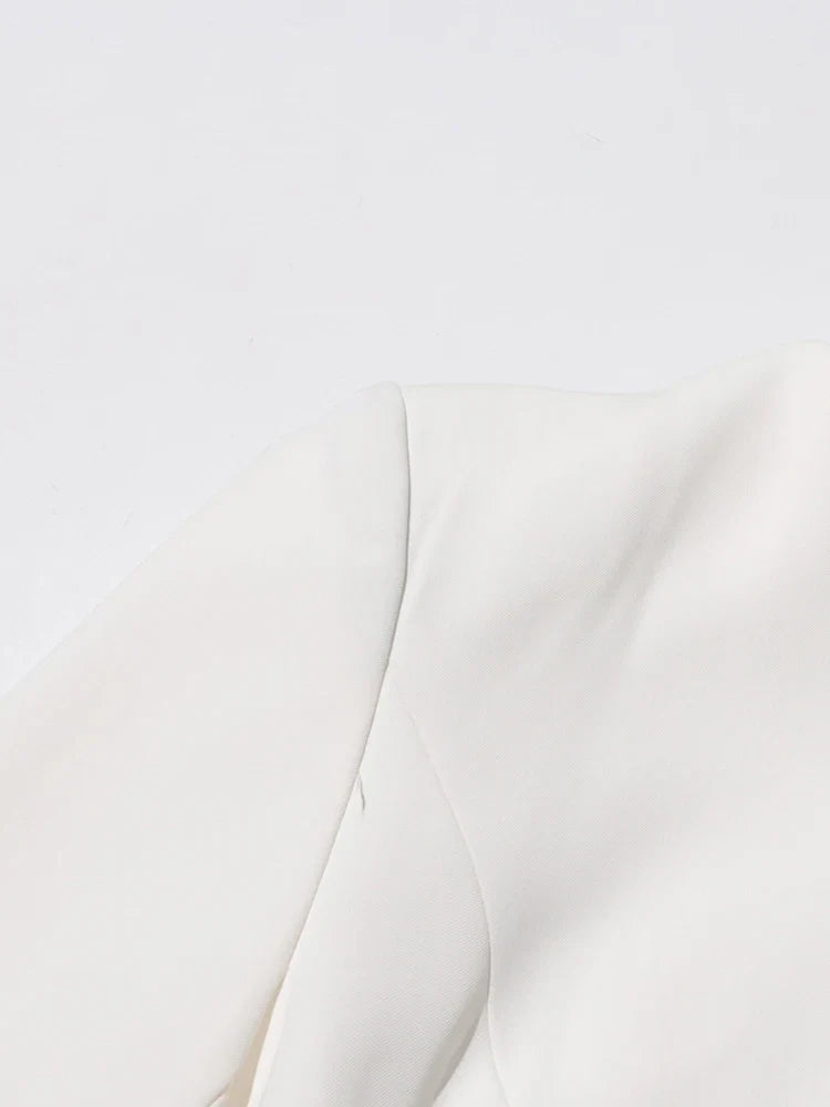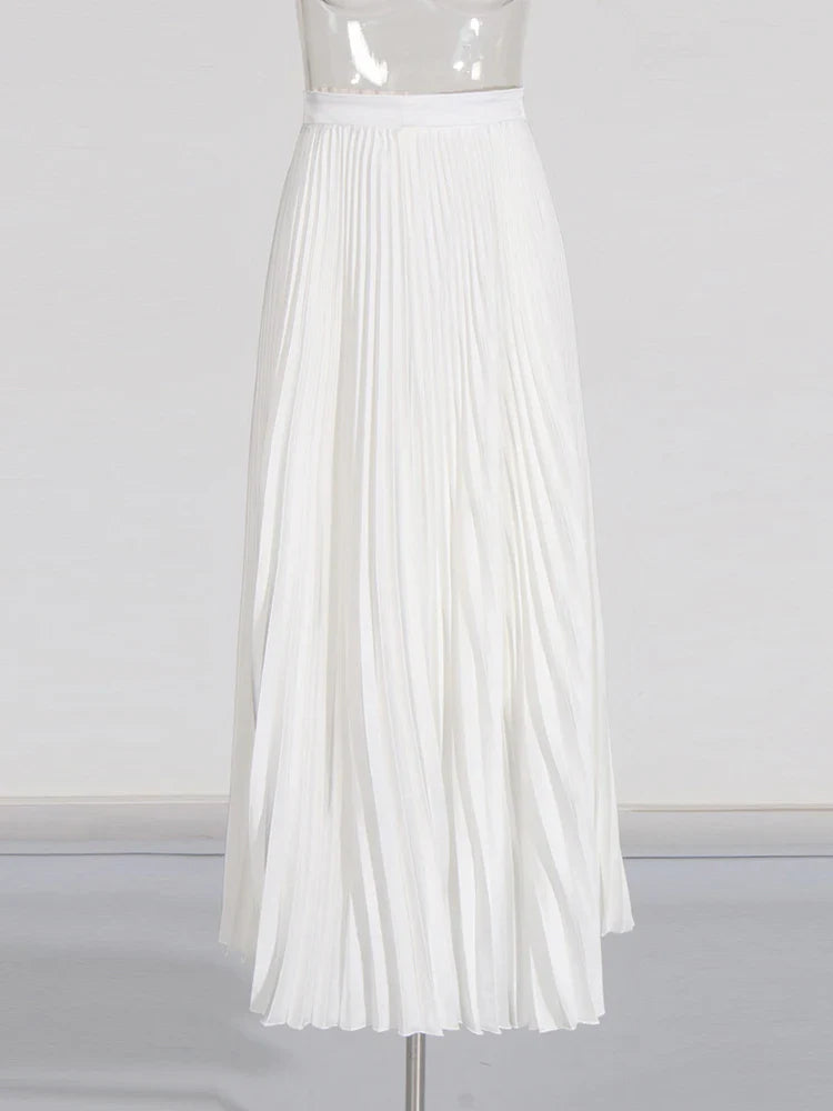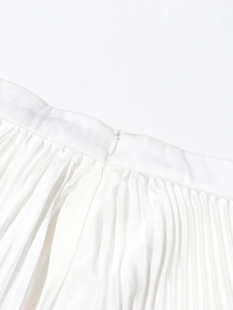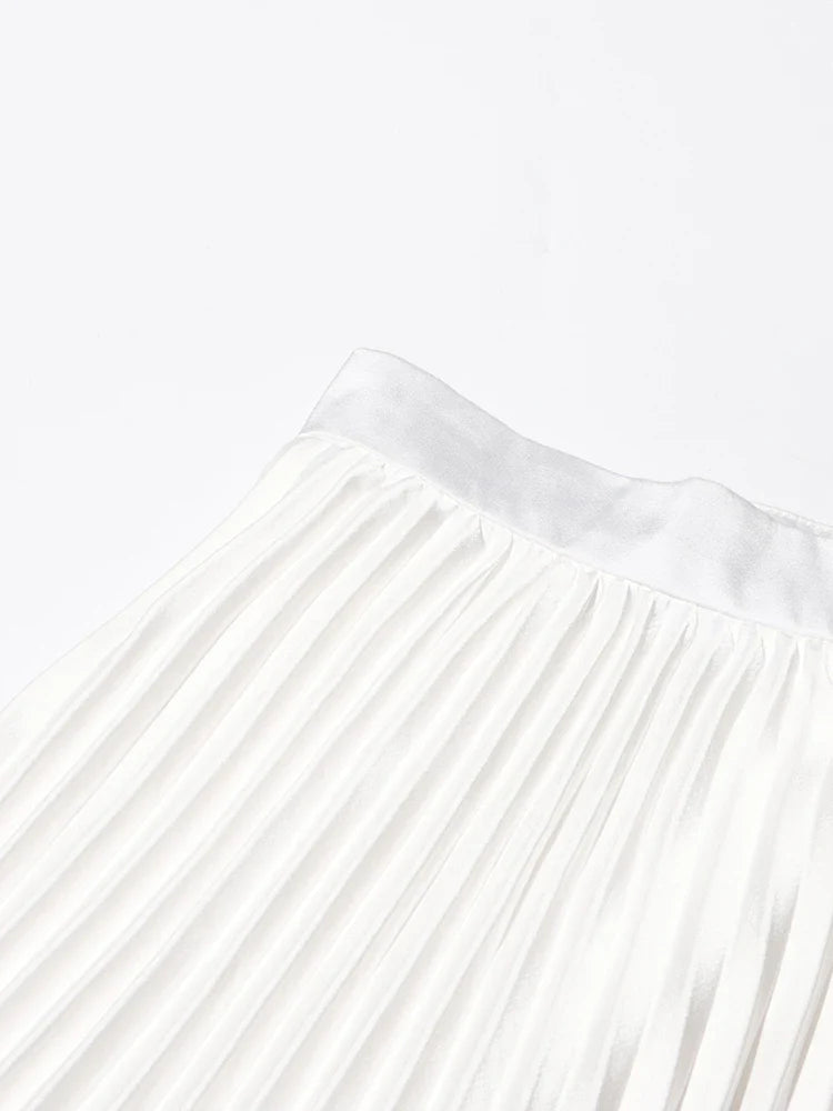 This chic all-white 2-piece set combines elegance with comfort. The tailored blazer pairs perfectly with the pleated long midi skirt for a stylish. timeless look.