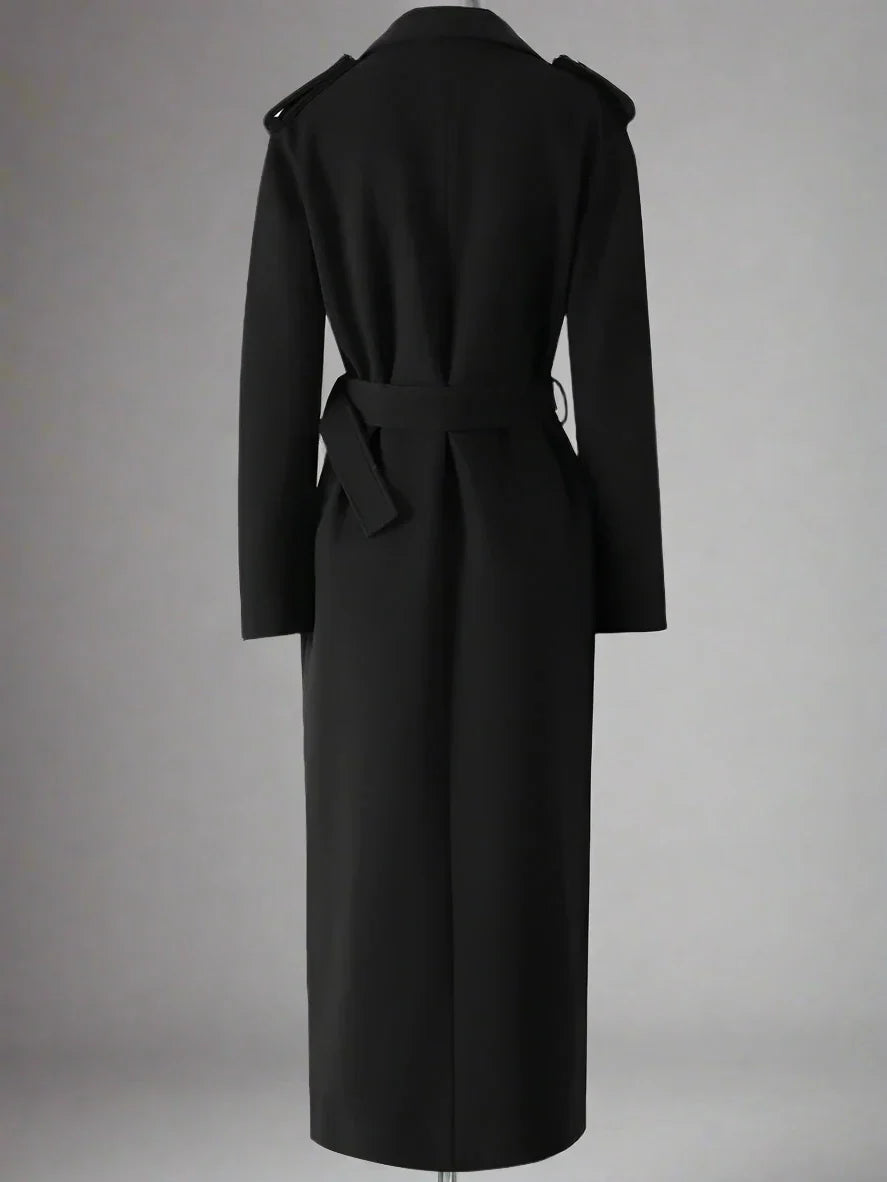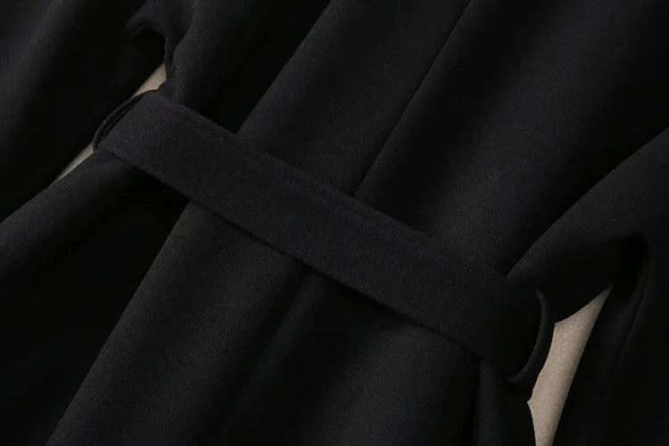 Stay cozy and warm in this black woolen floral embroidered belted long coat. designed to wrap you in elegance.