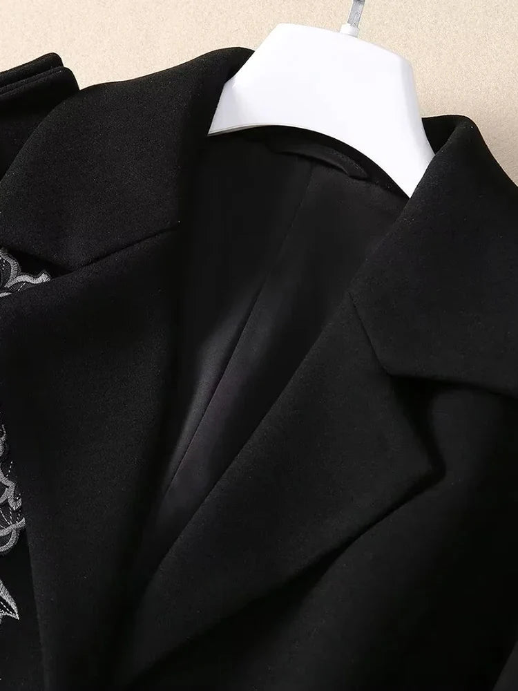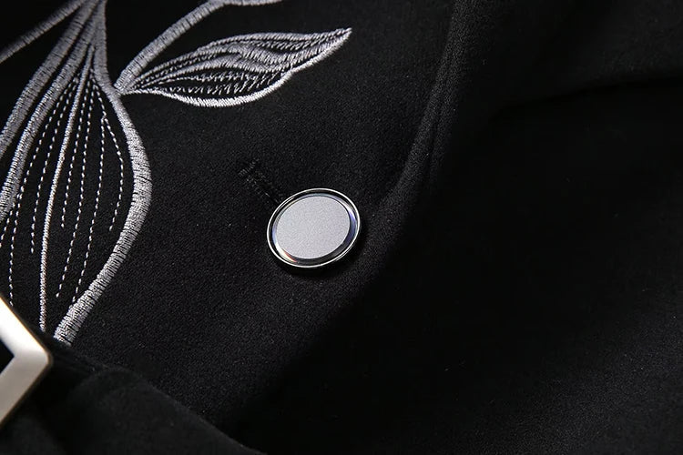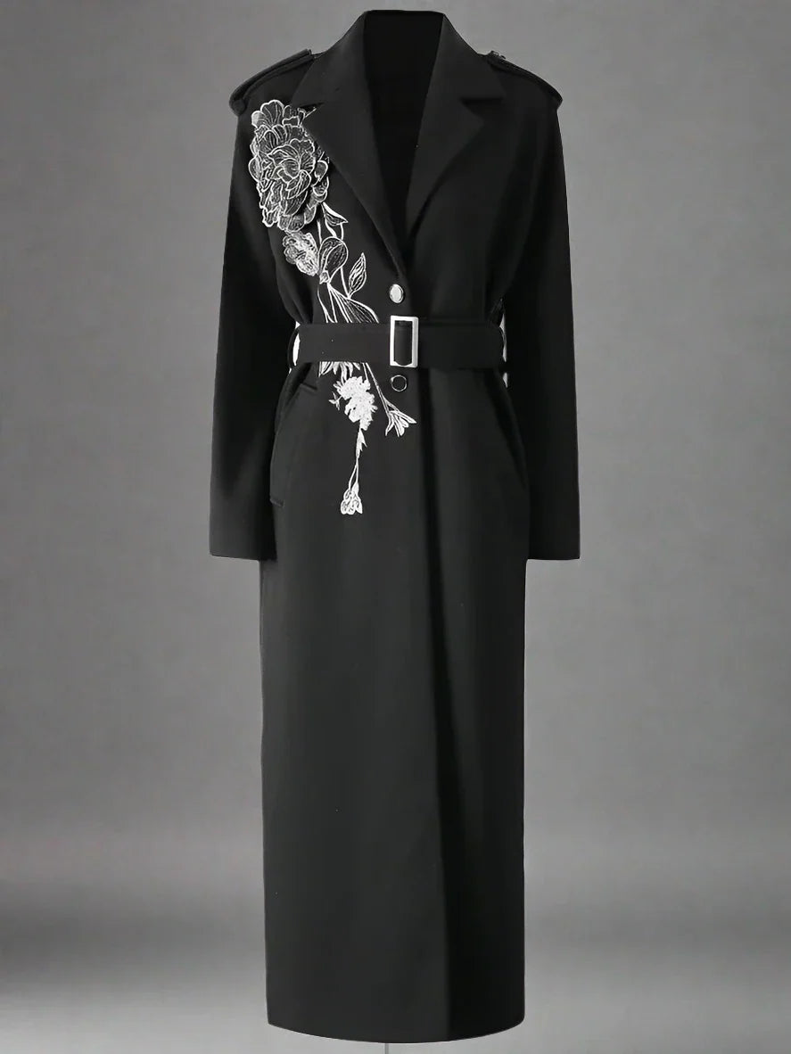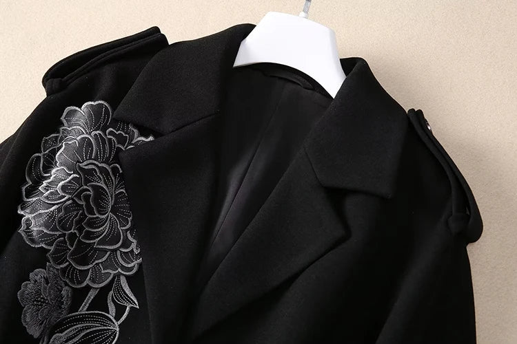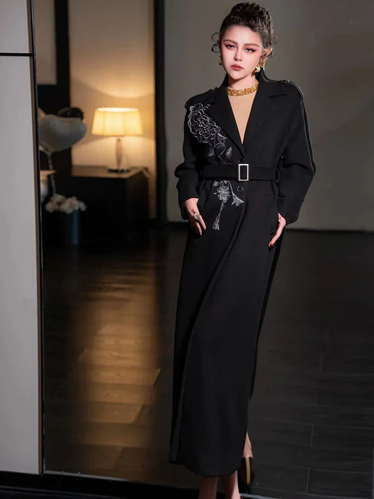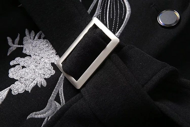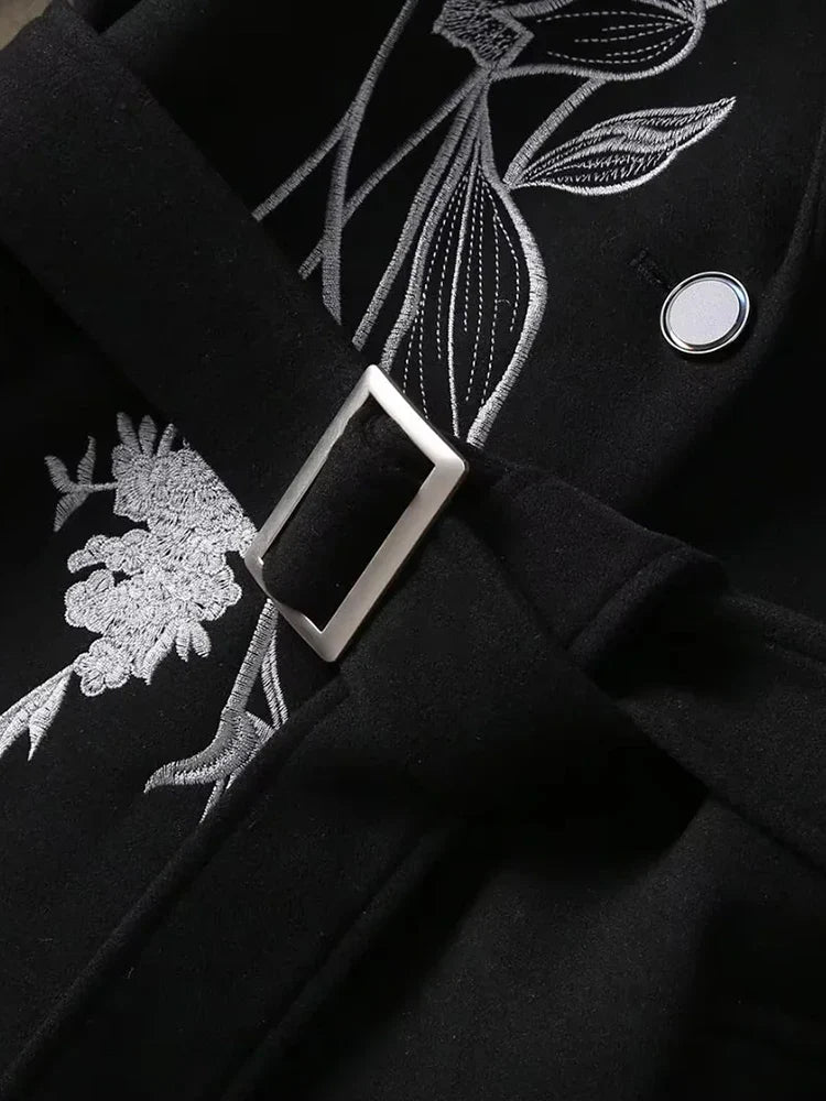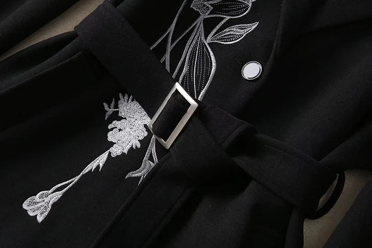 Women's Luxury Floral Embroidered Woolen Coat