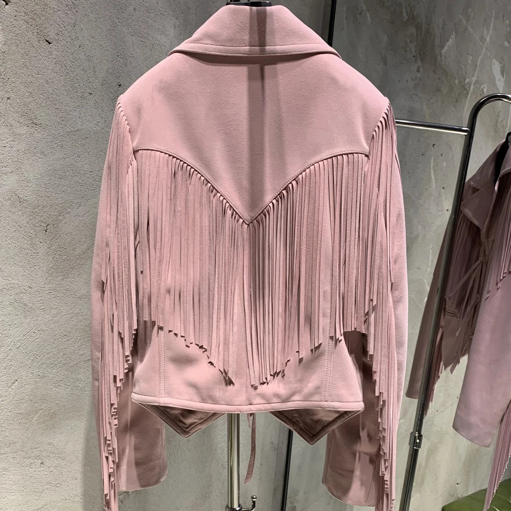 Made from genuine premium lambskin suede and tailored to order. this jacket is a true luxury piece. The soft. smooth texture meets refined fringe detailing for a look that's both elegant and bold.