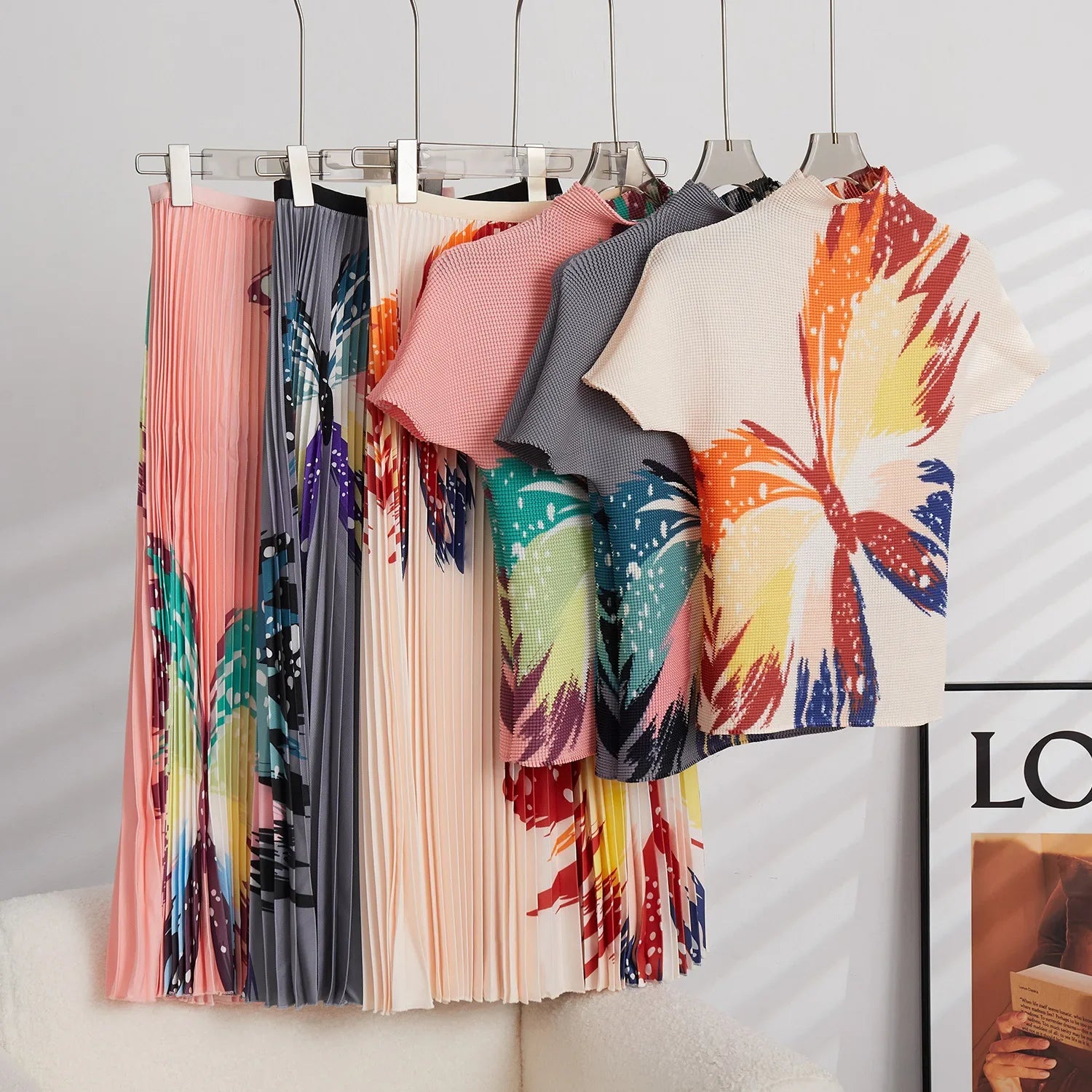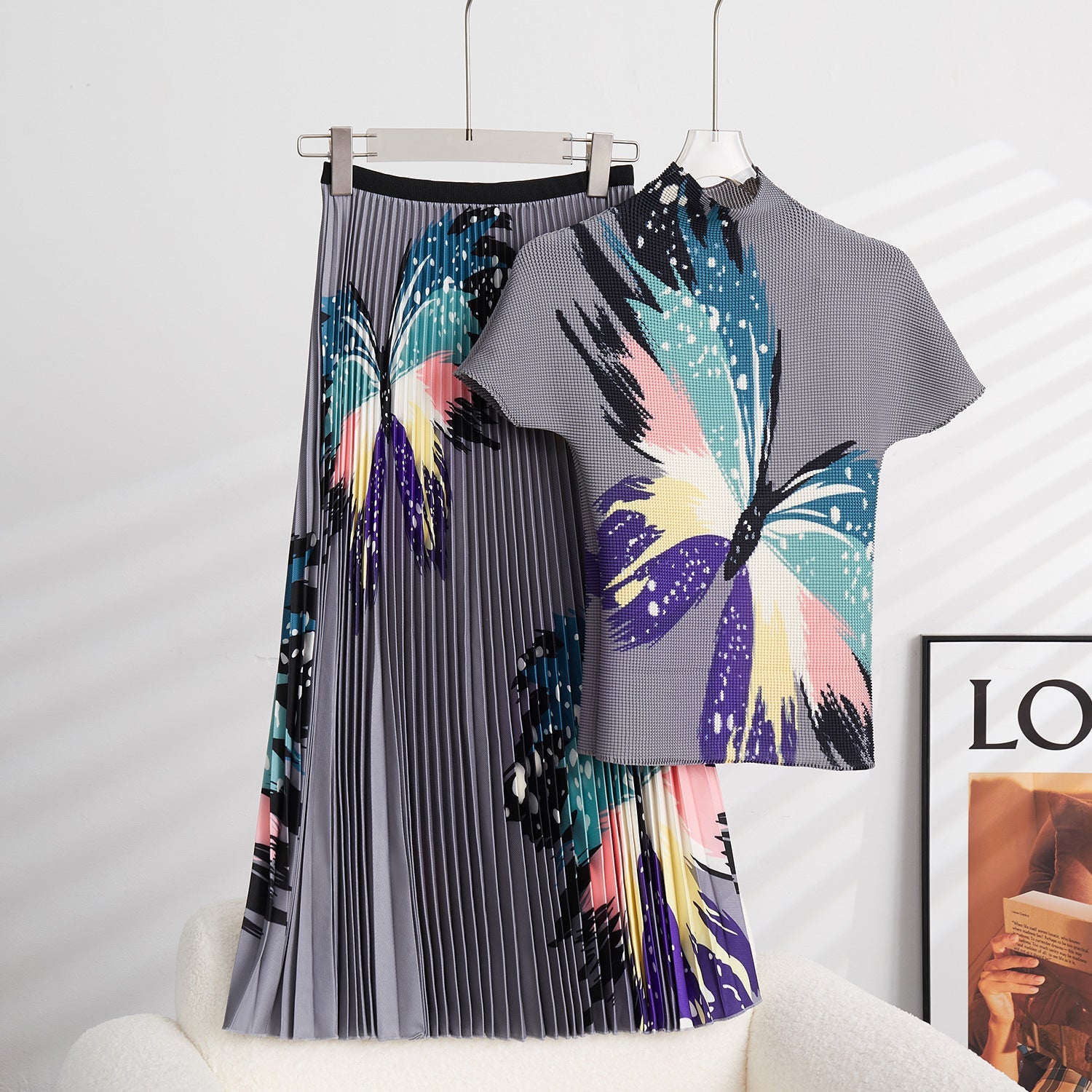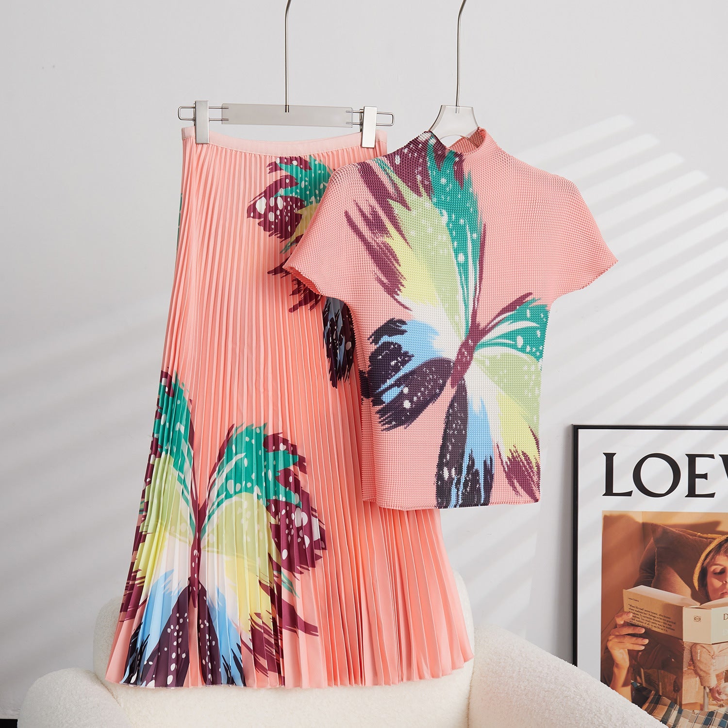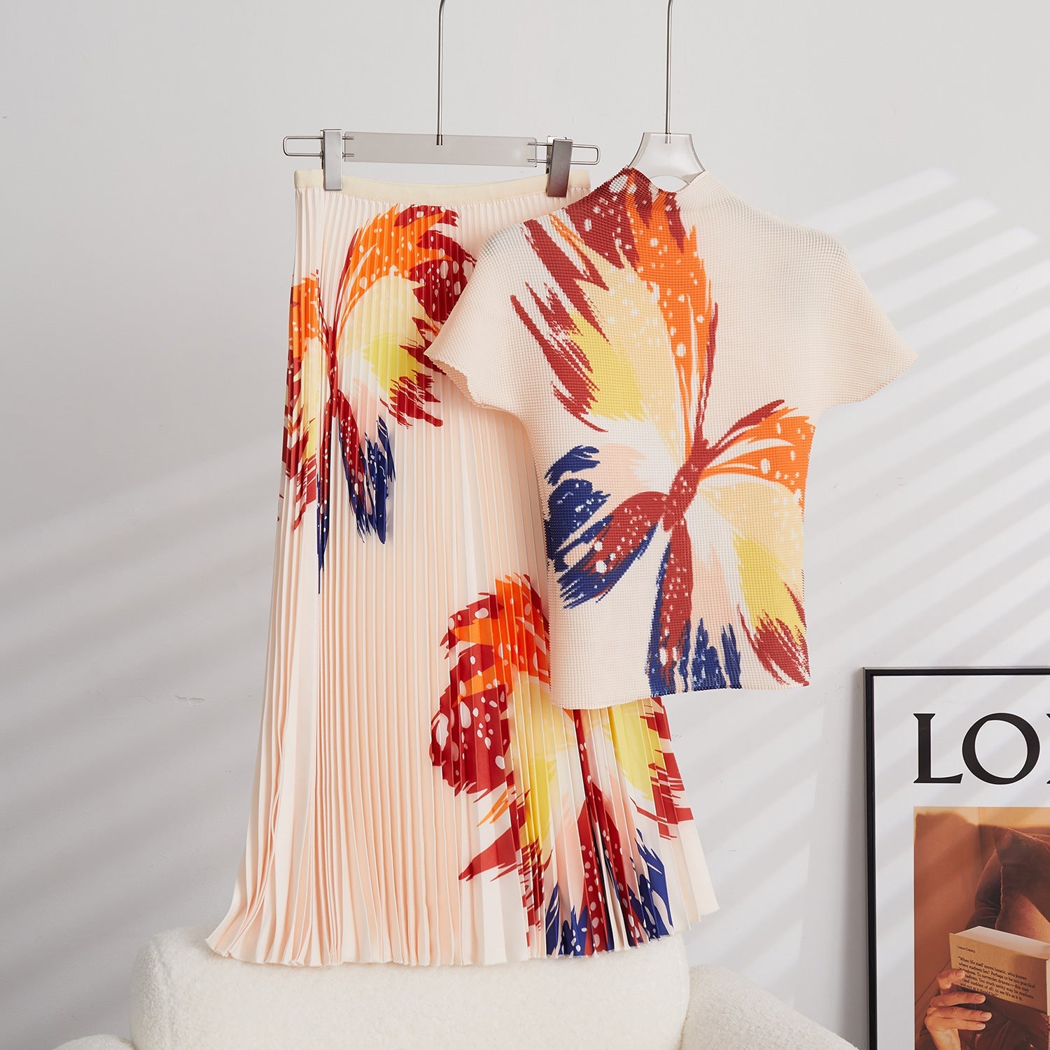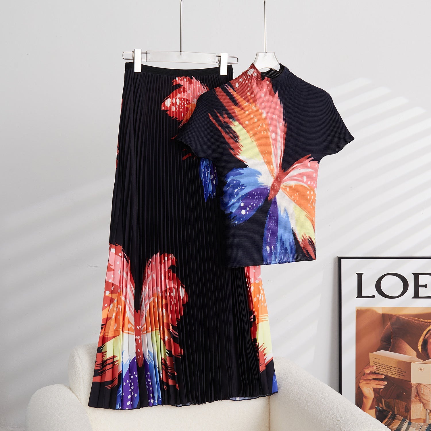 Feel the luxury with this stunning pleated skirt set. The short-sleeve top and flowing maxi skirt are crafted from rich pleated fabric that moves with you. giving off an effortless. elegant vibe.