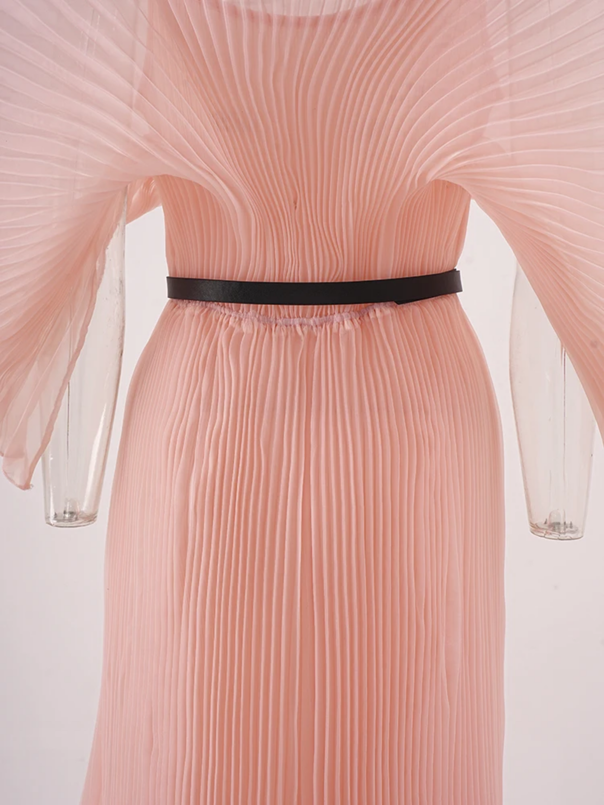 Women's Pleated Maxi Dress | Elegant Puff Up Sleeves