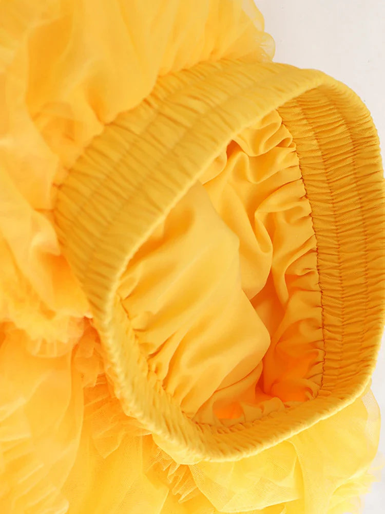 Voluminous tiers meet a structured A-line shape in this tailored organza midi skirt. Features a pull-on design with an elastic waistband for comfort and movement. Light shimmer. bold silhouette—made to stand out.