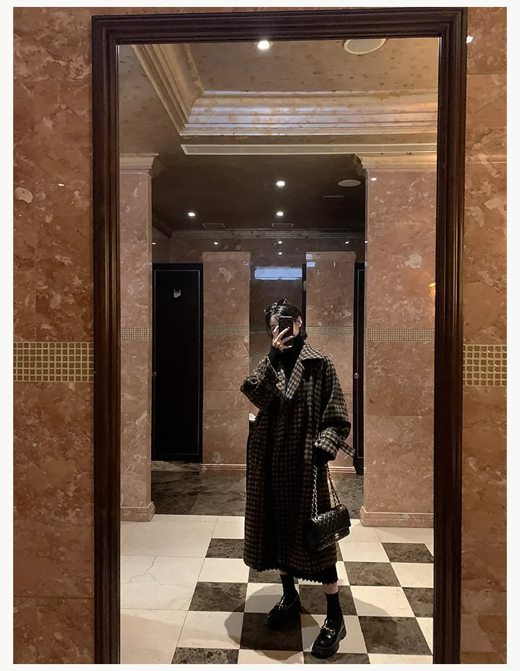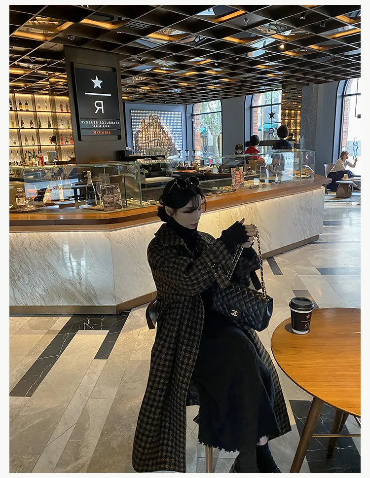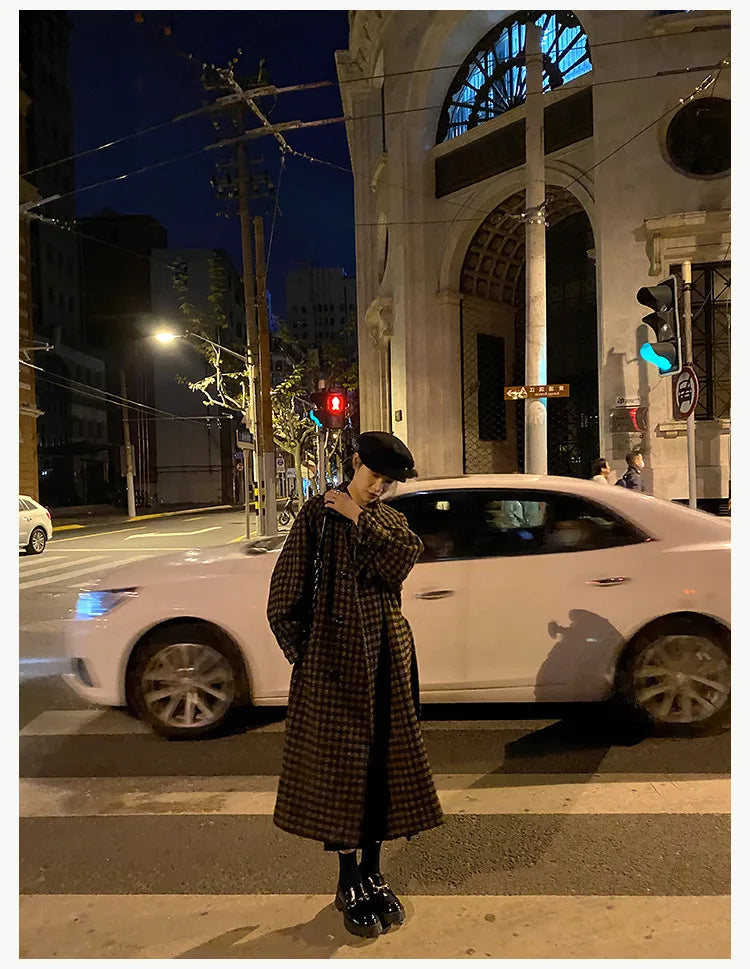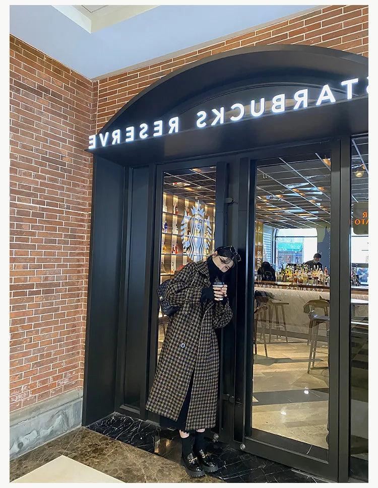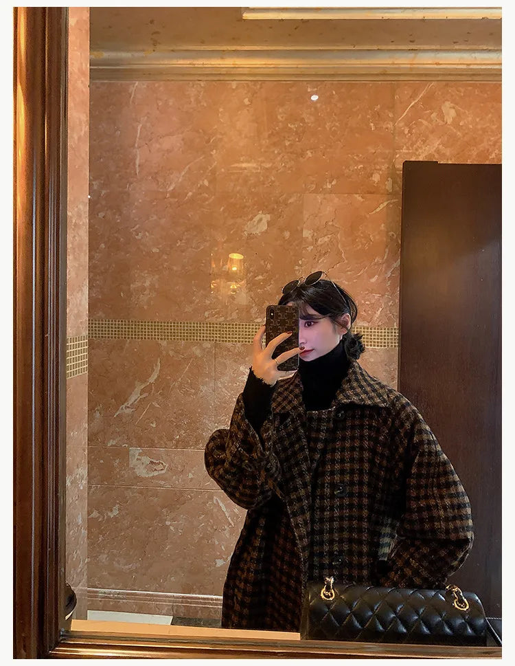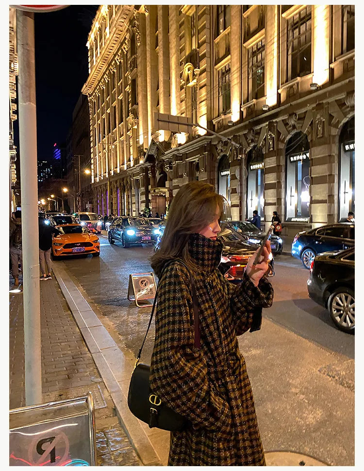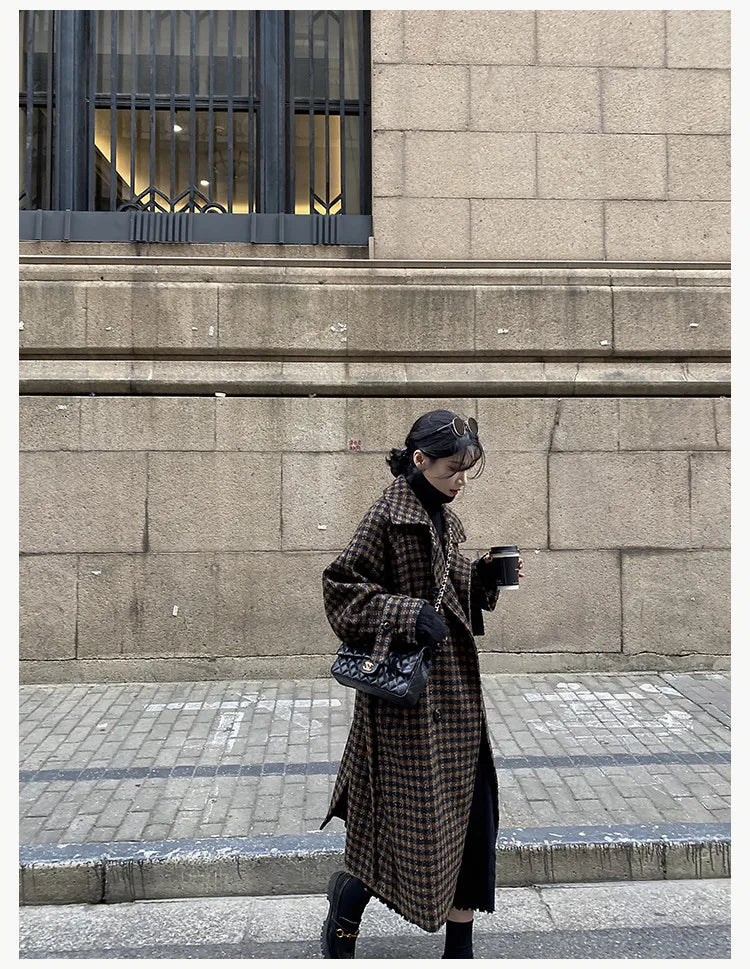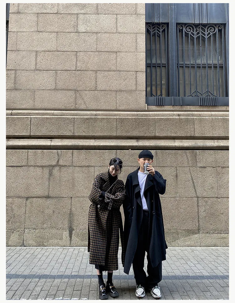Wrap up in timeless style with this brown plaid woolen trench. designed for warmth and elegance on the chilliest days.