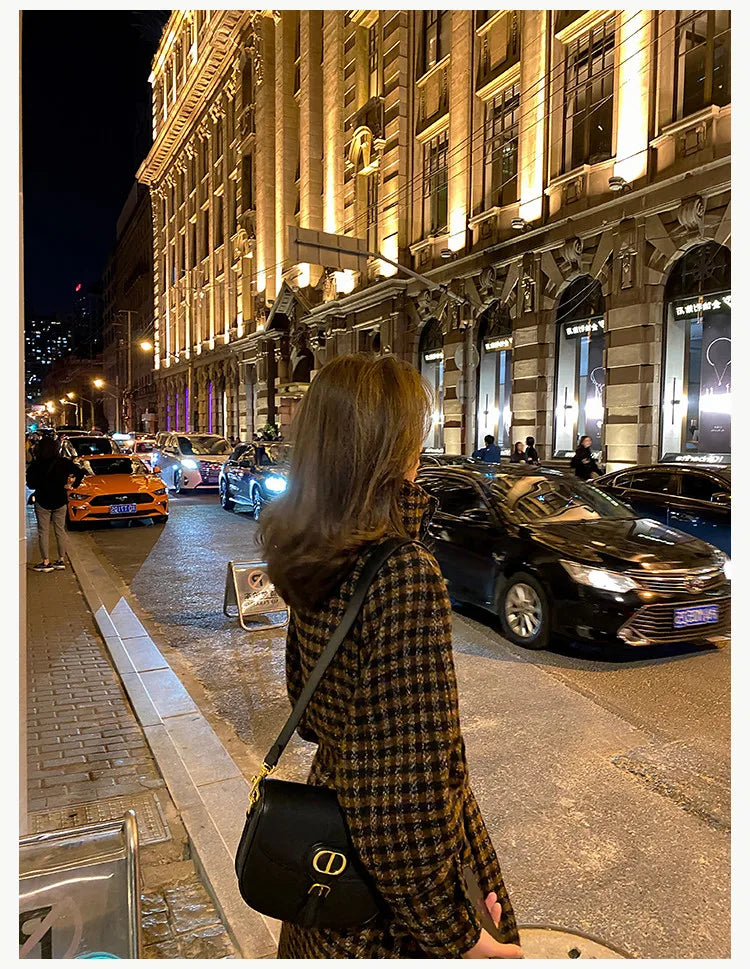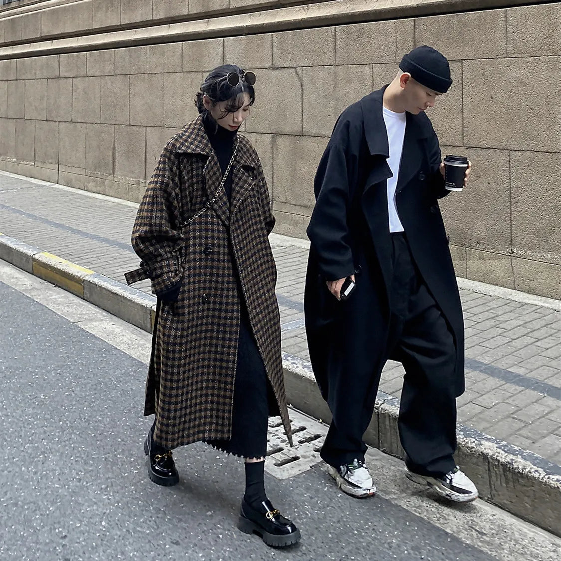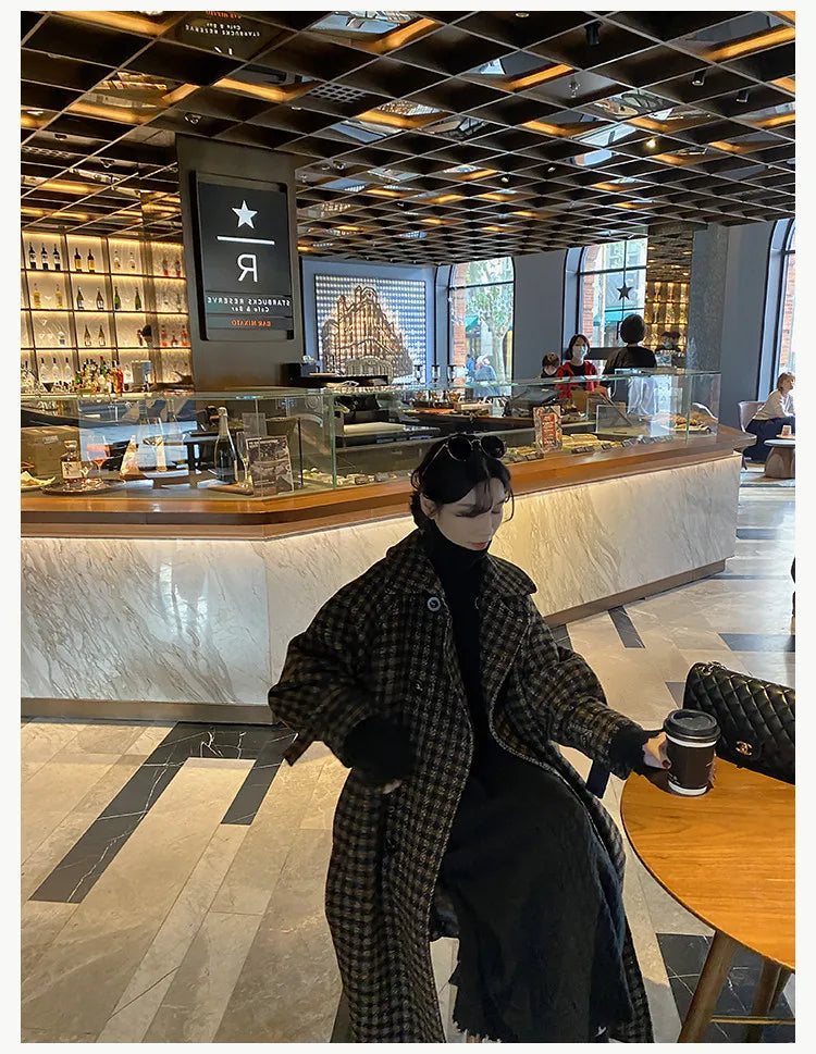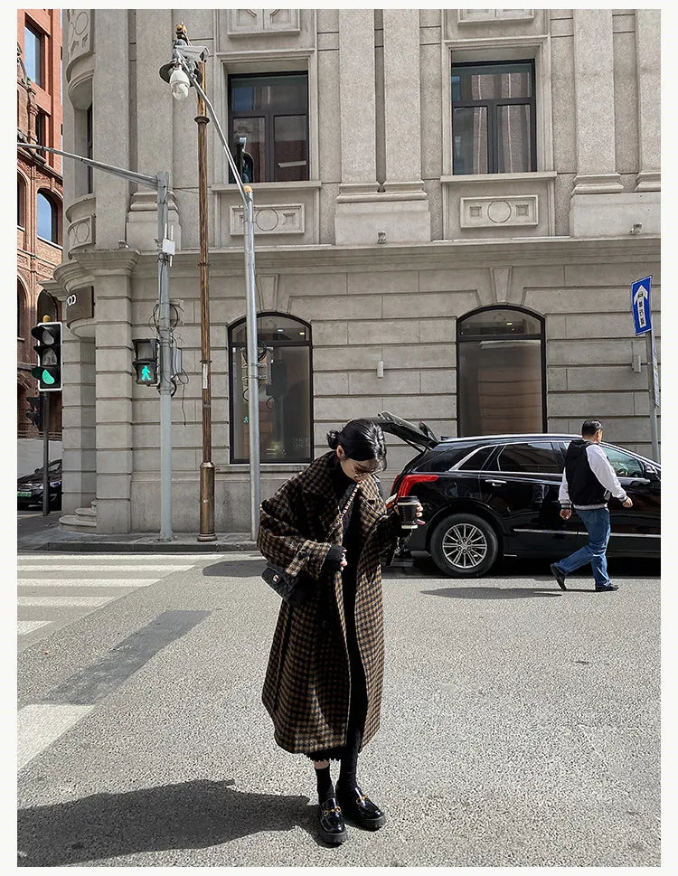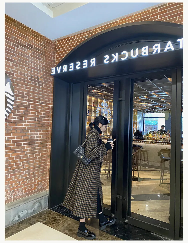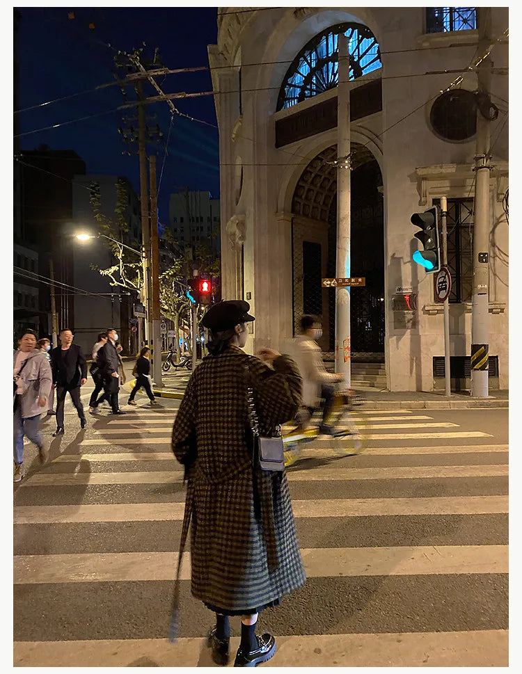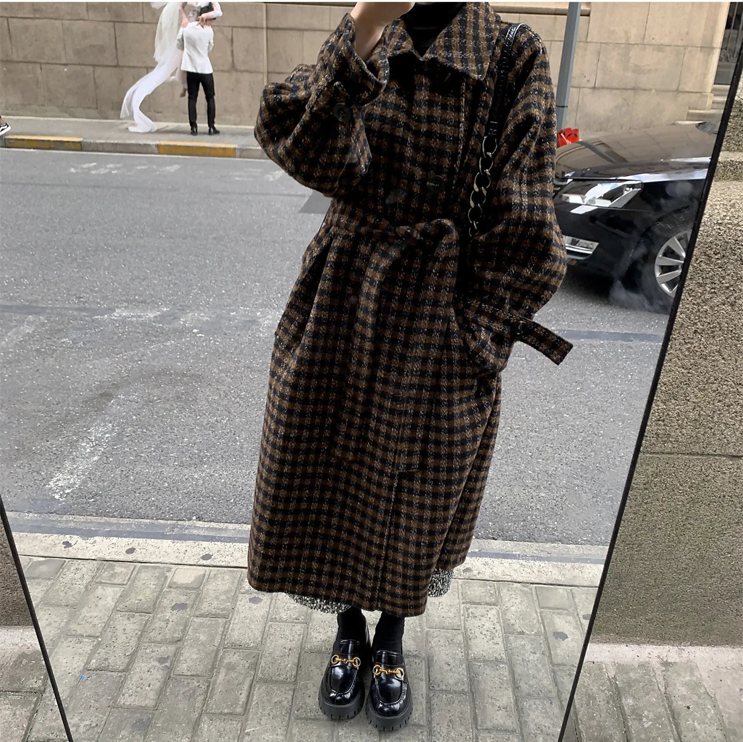 Wrap up in timeless style with this brown plaid woolen trench. designed for warmth and elegance on the chilliest days.