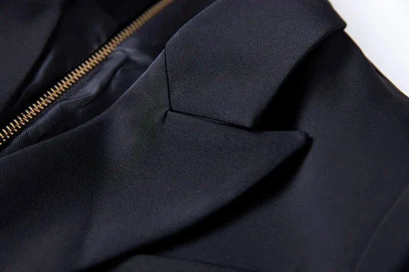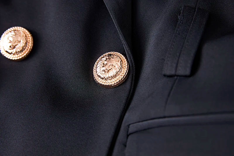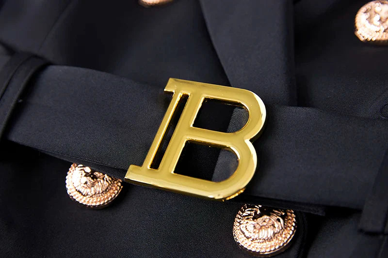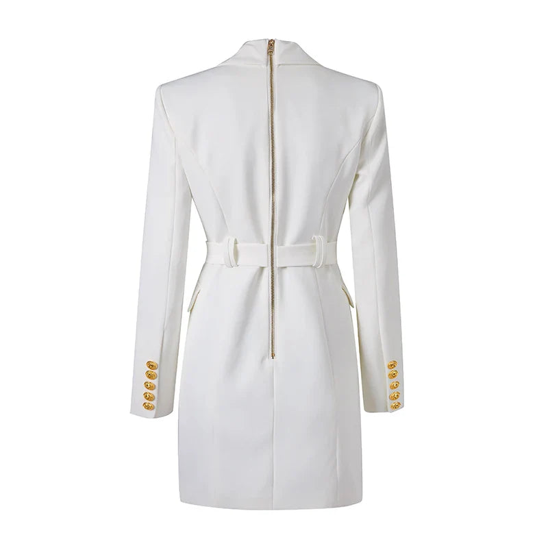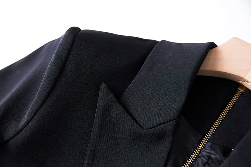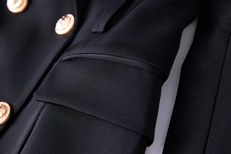 Discover the epitome of elegance with this designer blazer coat. available in classic black and white. Its luxurious long length and gold button accents bring an air of sophistication to any outfit.