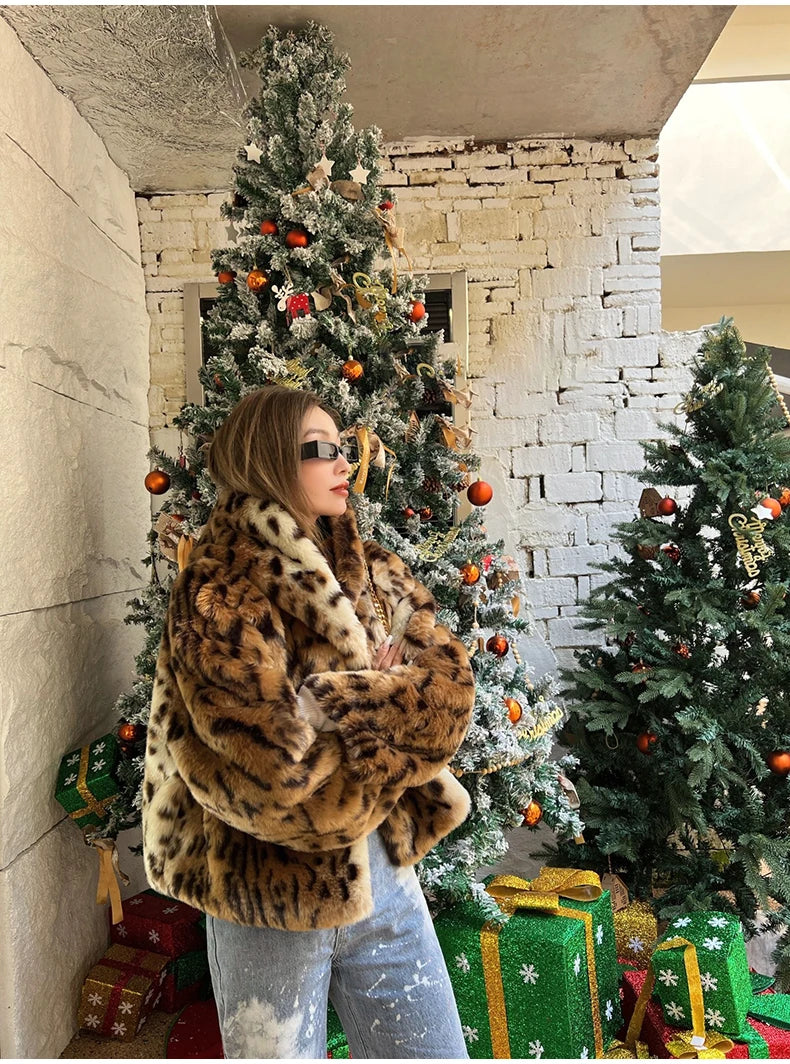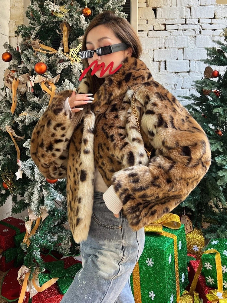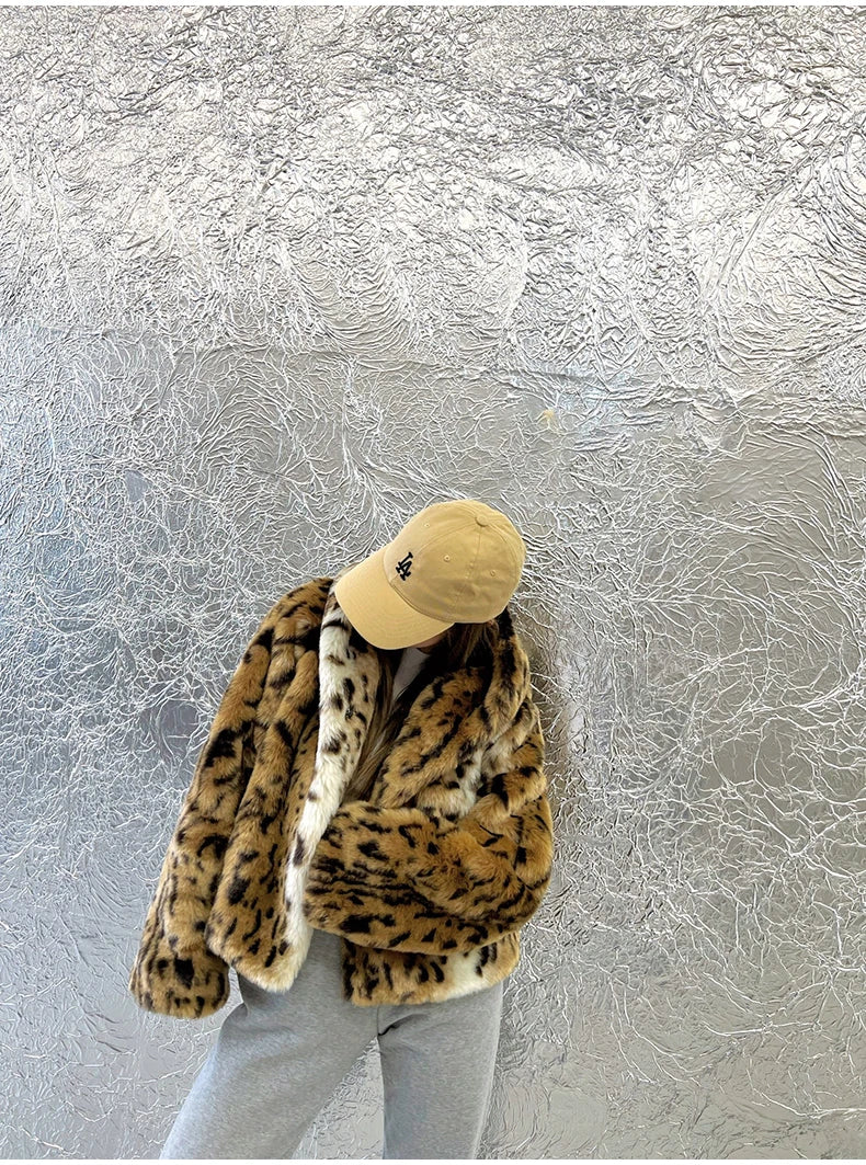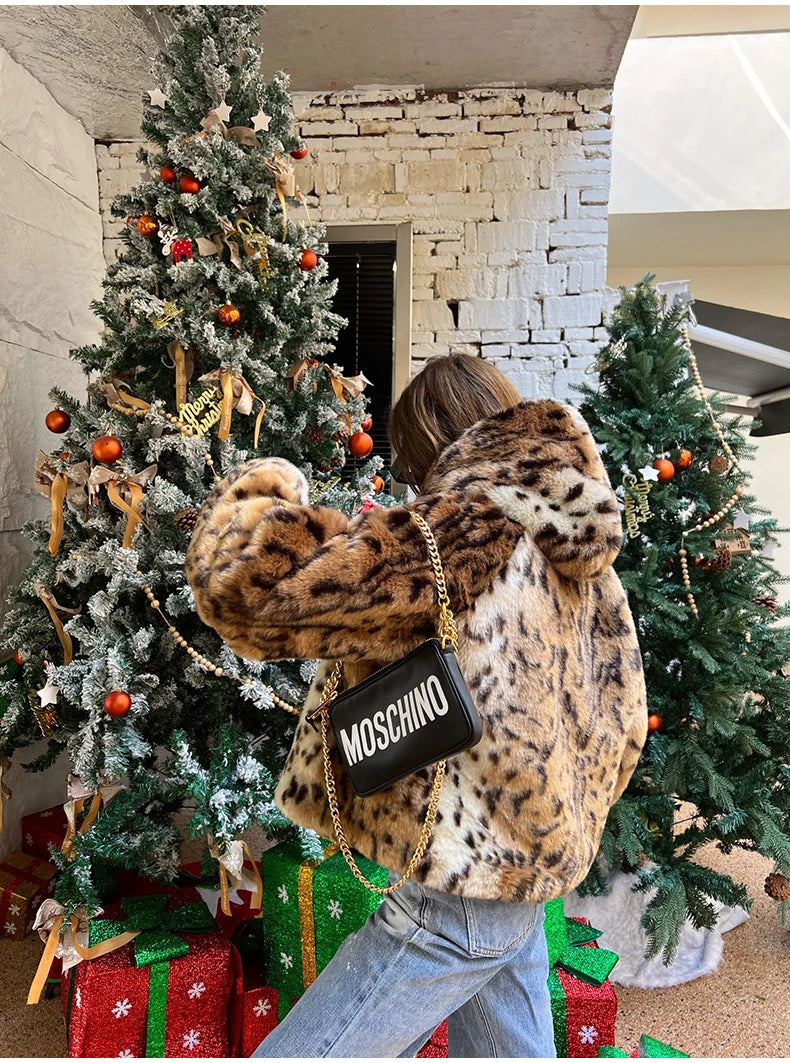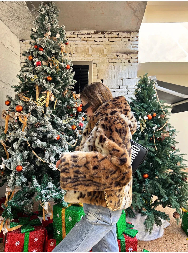 A blend of bold style and cozy luxury. this cropped leopard print faux fur hoodie coat wraps you in warmth while keeping your look effortlessly chic.