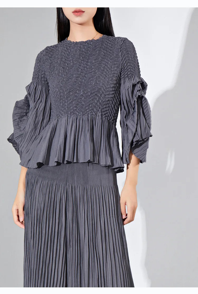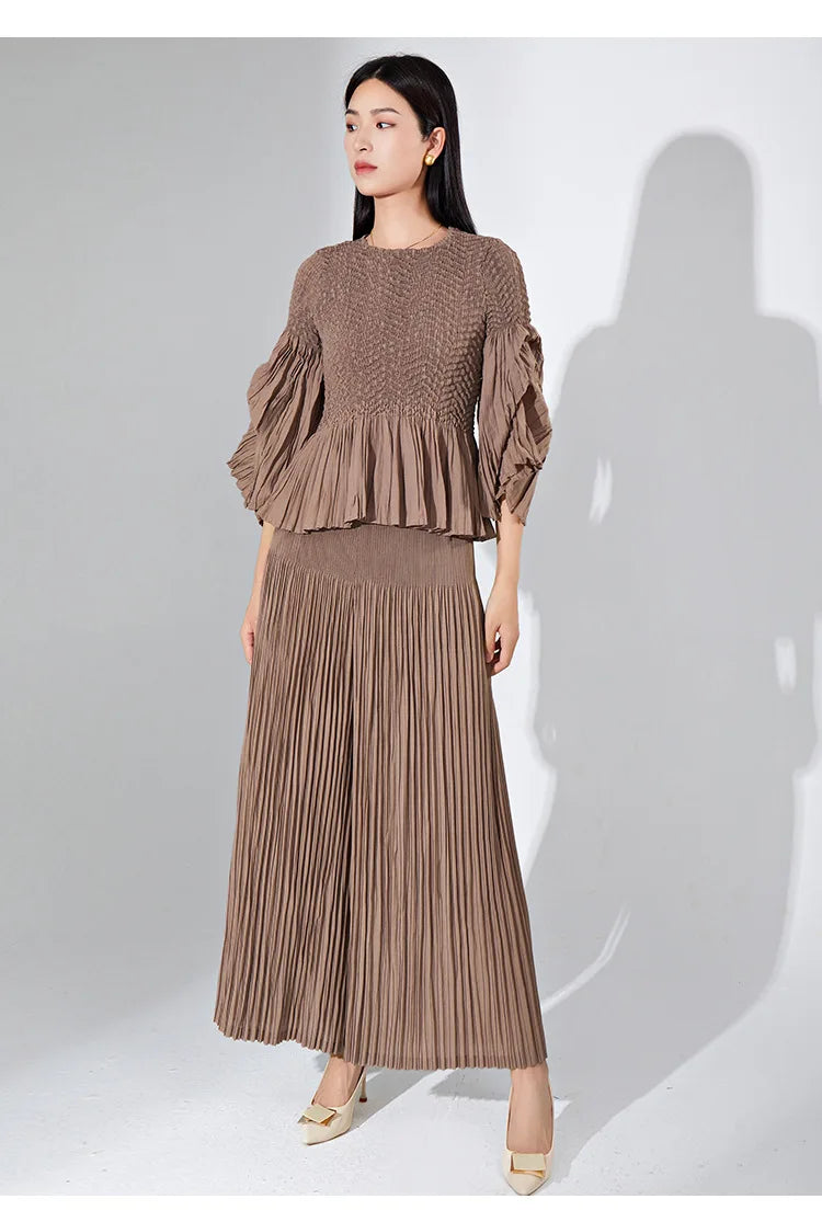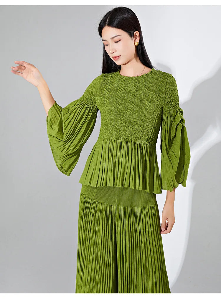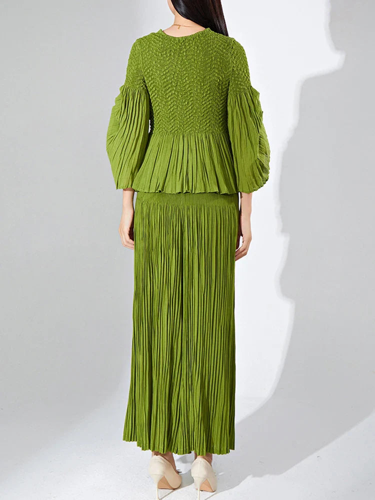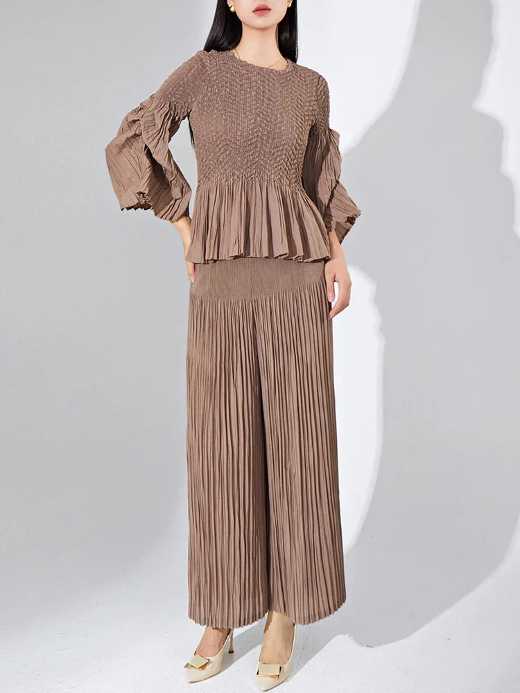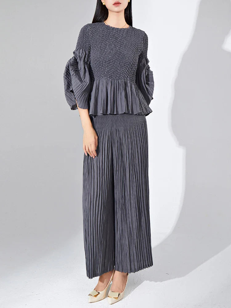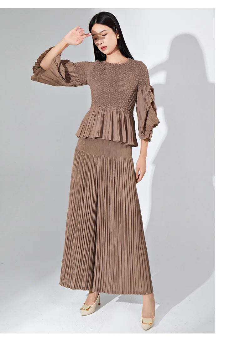 Effortlessly stylish. this 2-piece pleated trousers and top set is perfect for busy women seeking both comfort and sophistication.