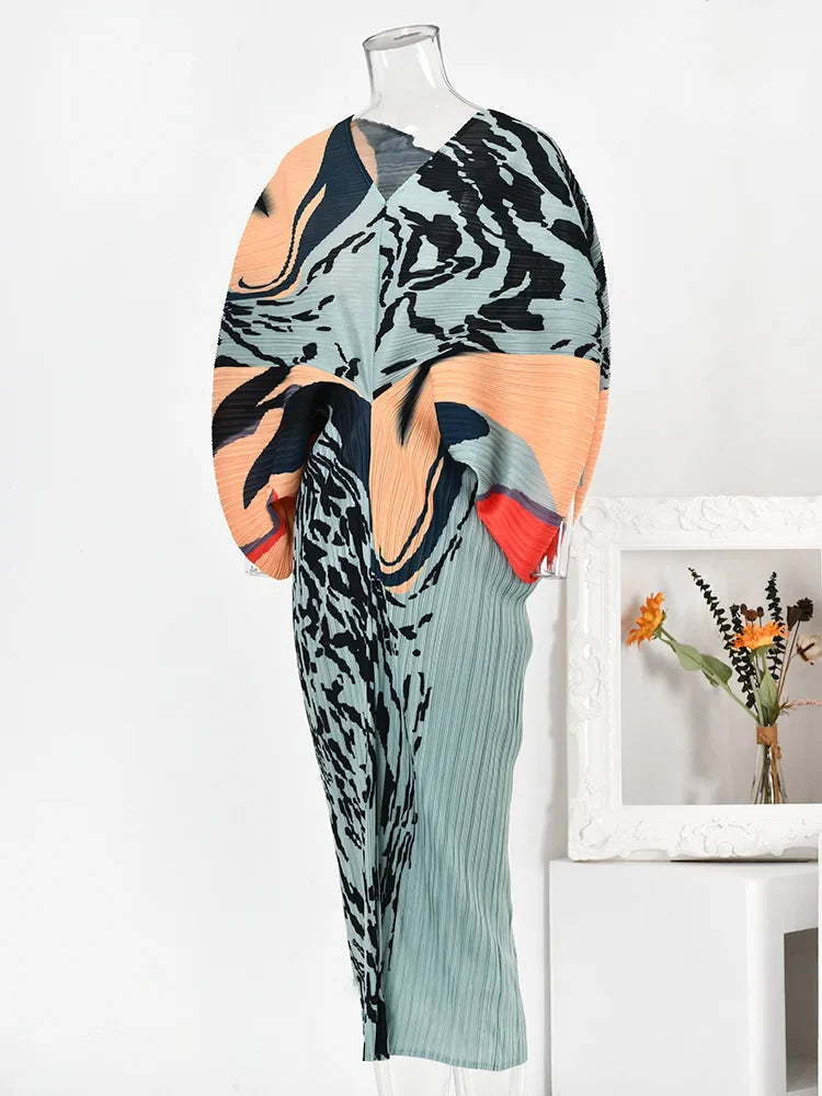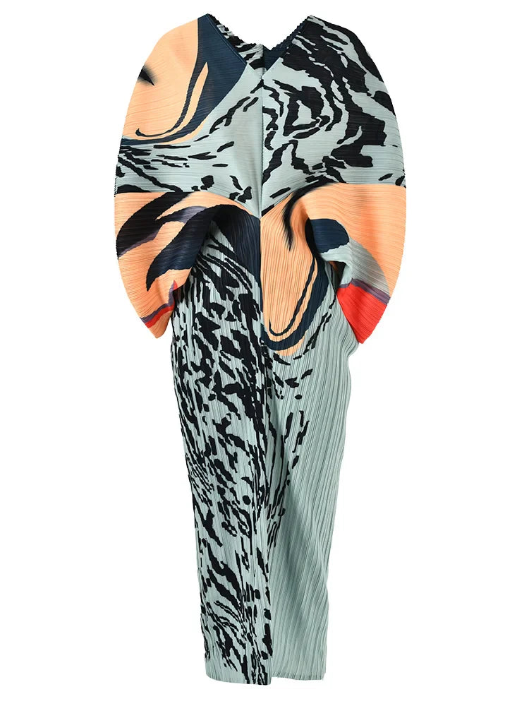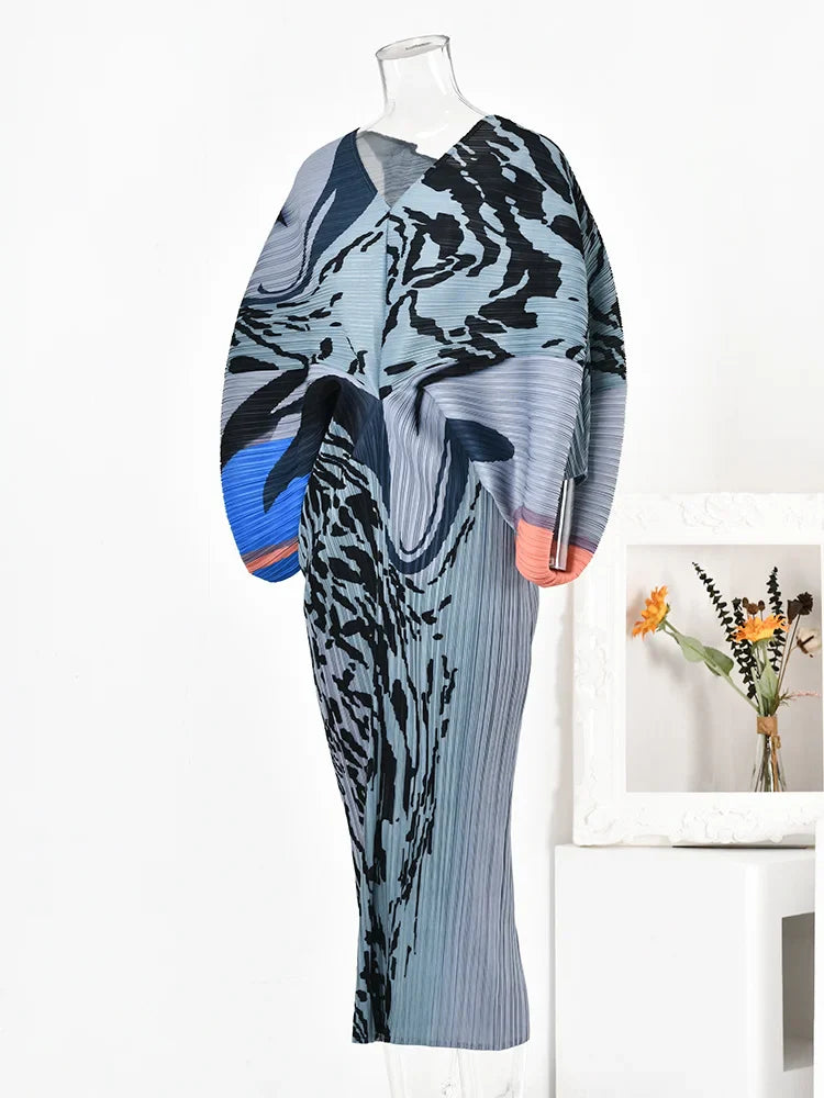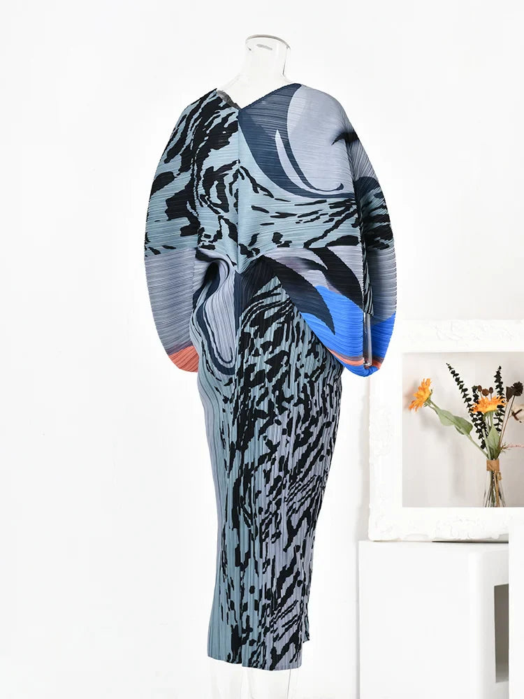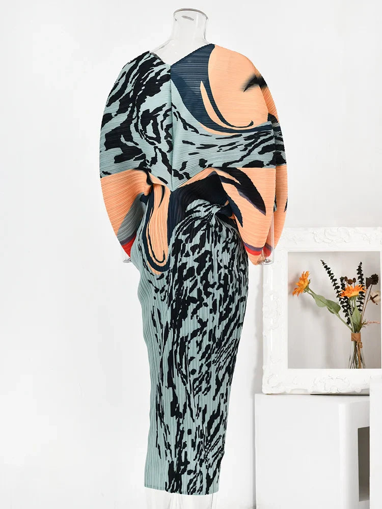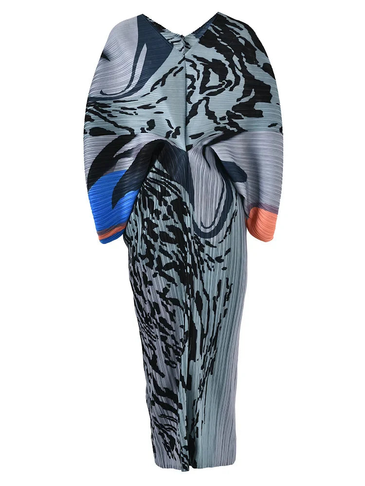 Introducing the Women's Stylish Batwing Sleeve Pleated Midi Dress. a symbol of contemporary elegance and effortless style. This dress features chic batwing sleeves and a flattering midi length. crafted from high-quality pleated material for a luxurious feel.