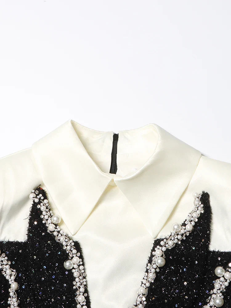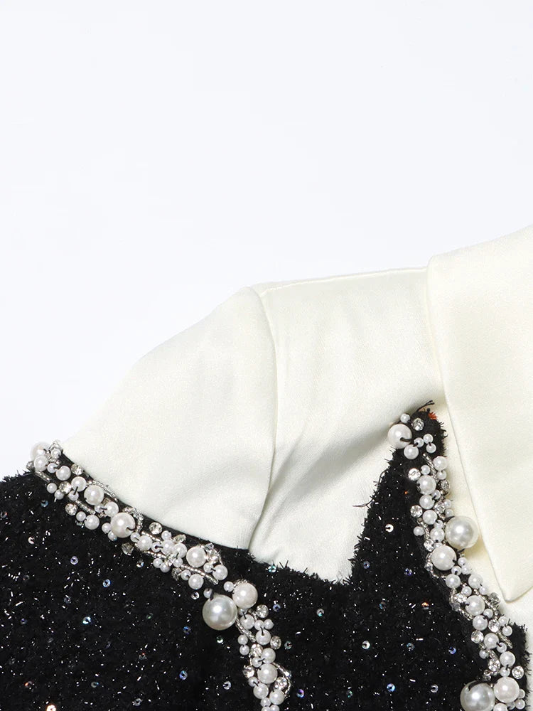 Women's Tuxedo Pearl Embellished Ultra Mini Dress