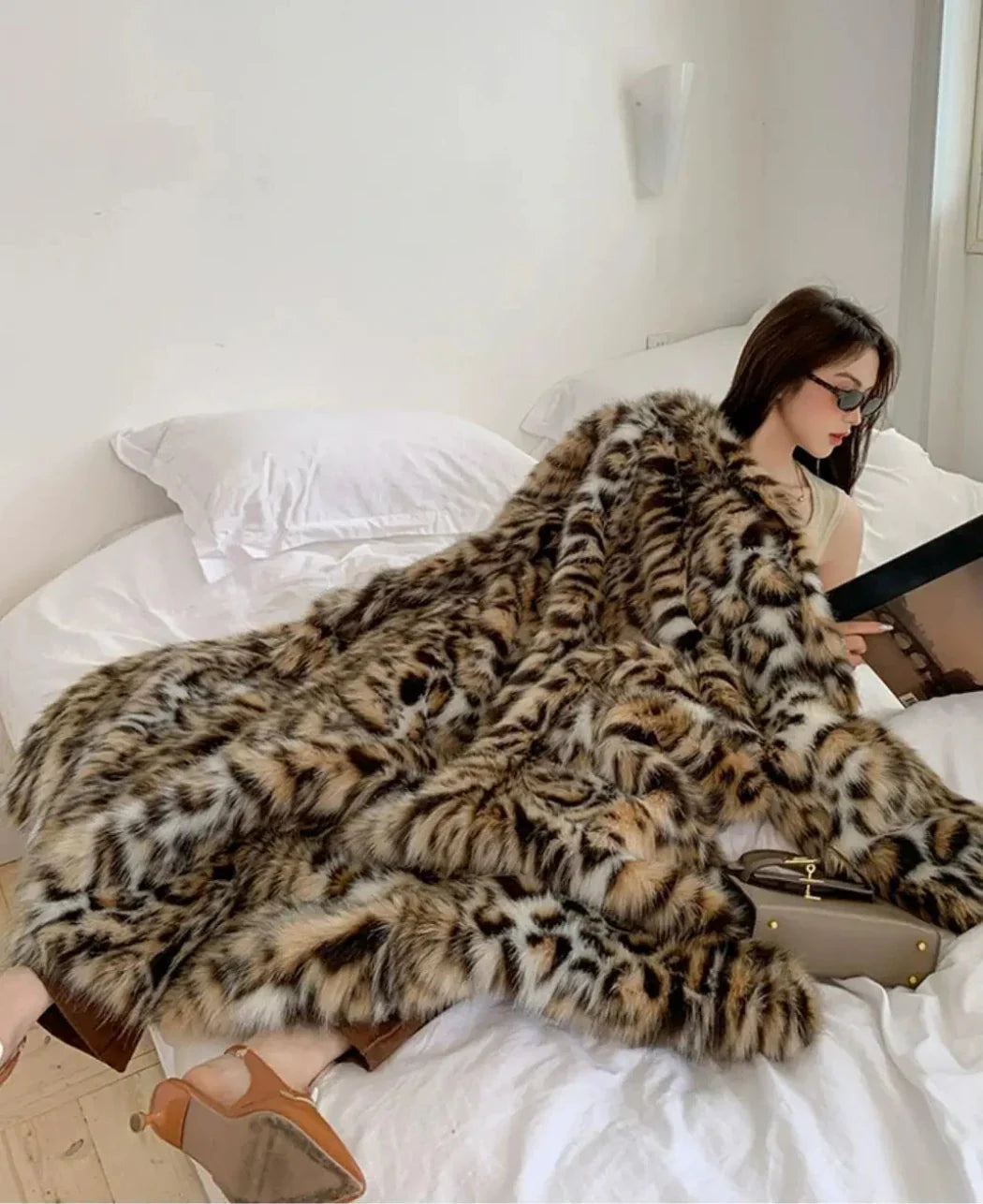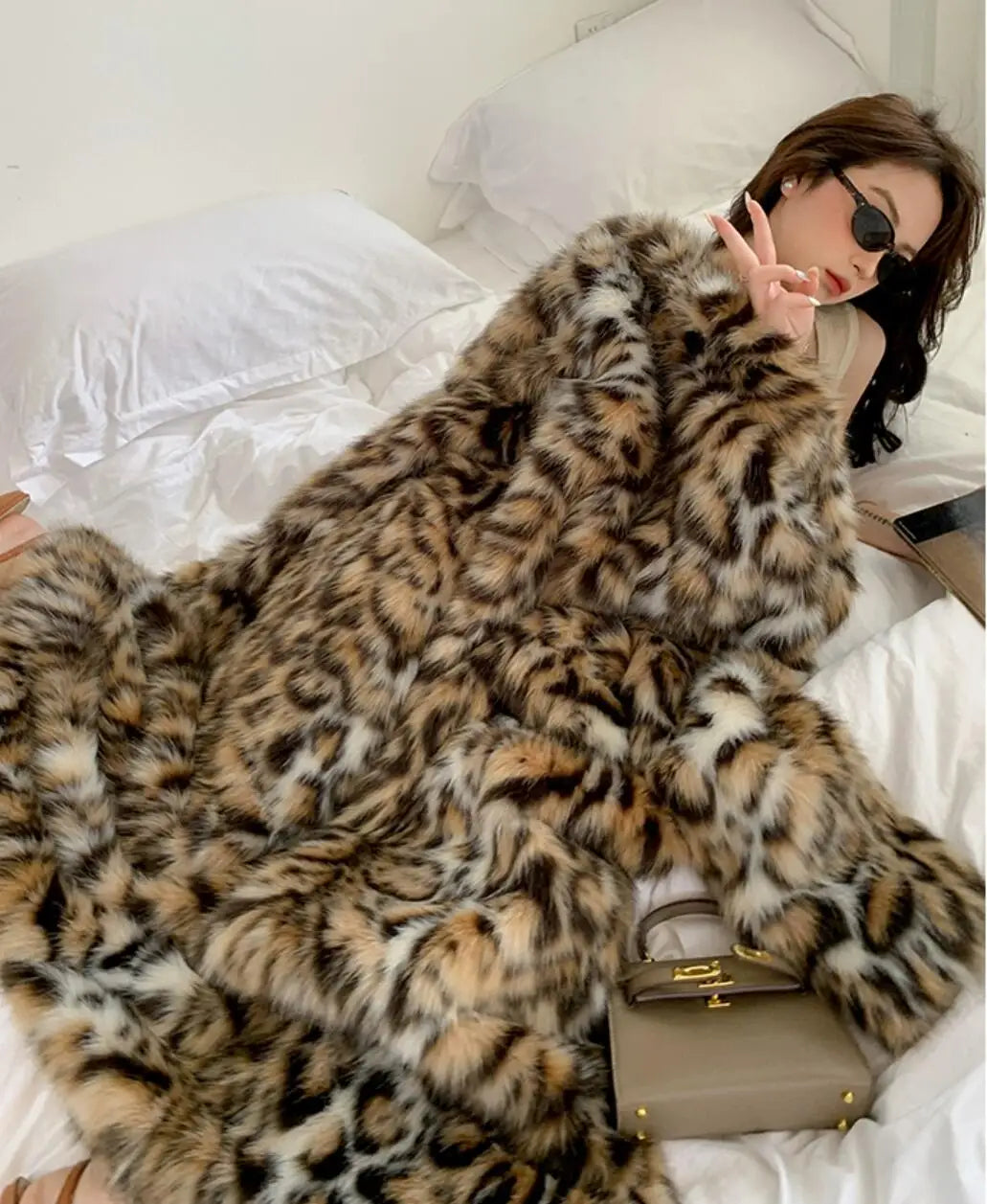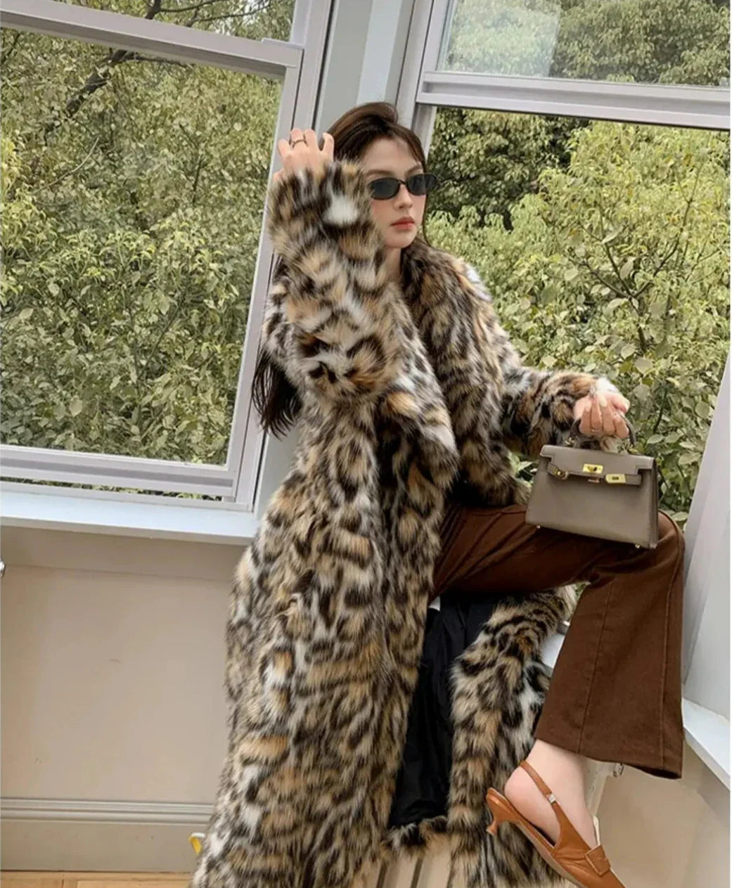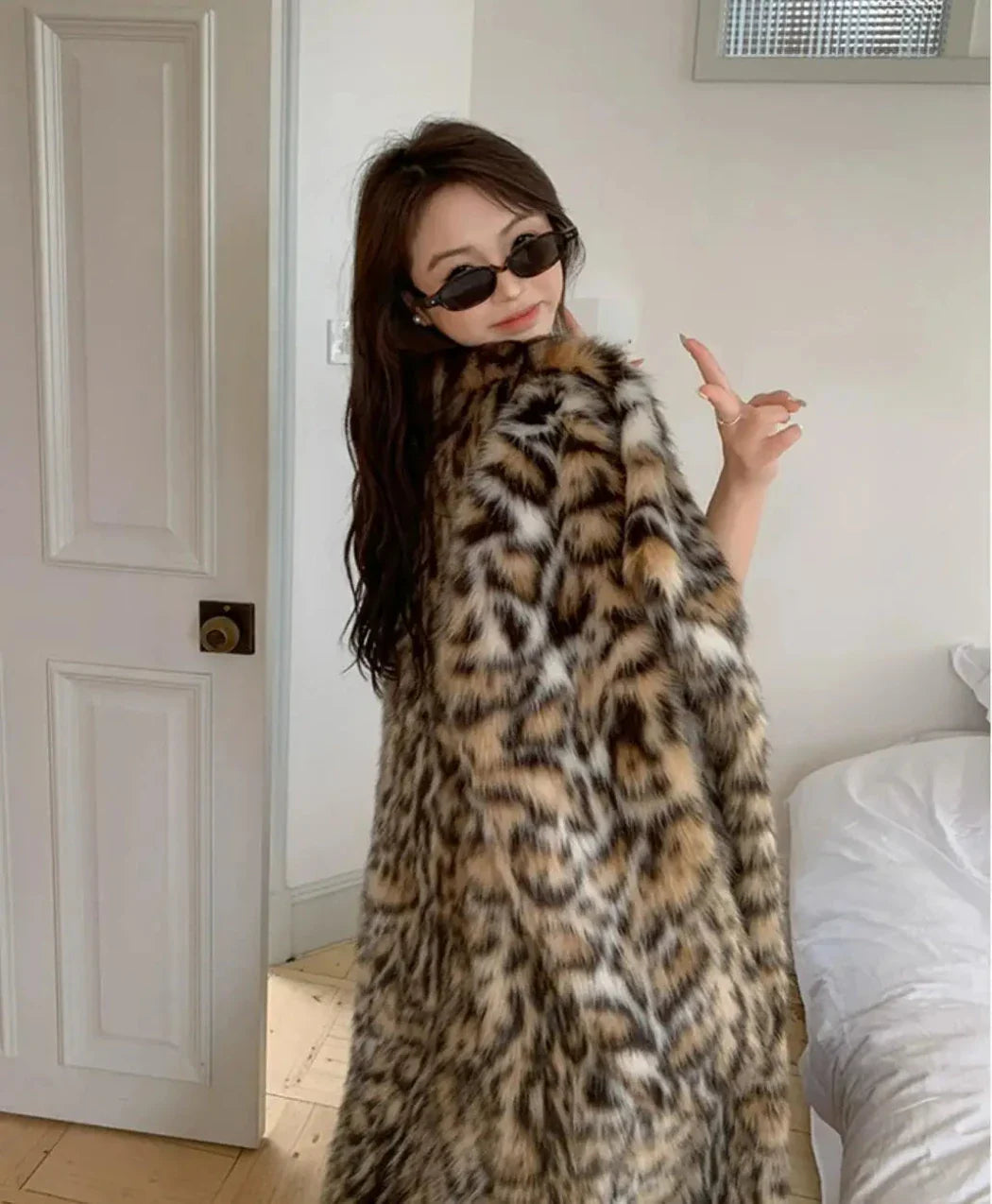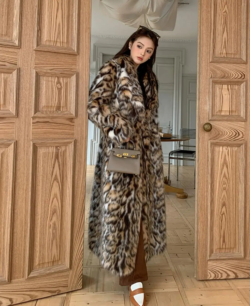 Wrap yourself in luxury with this full-length faux fur cheetah coat. Its elegant design combines warmth and comfort. making it the perfect statement piece for any season.