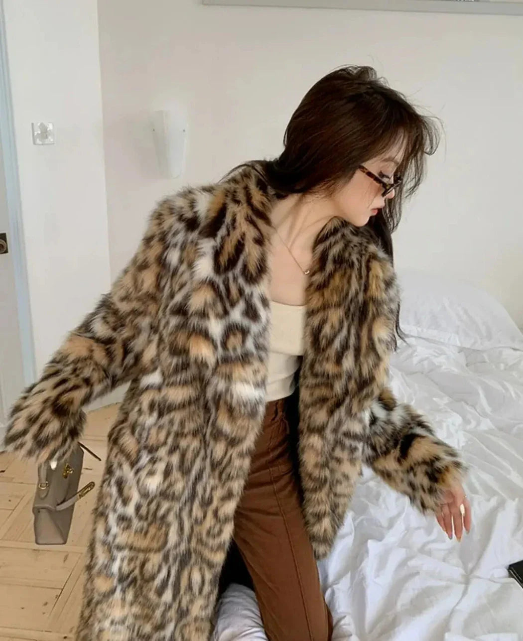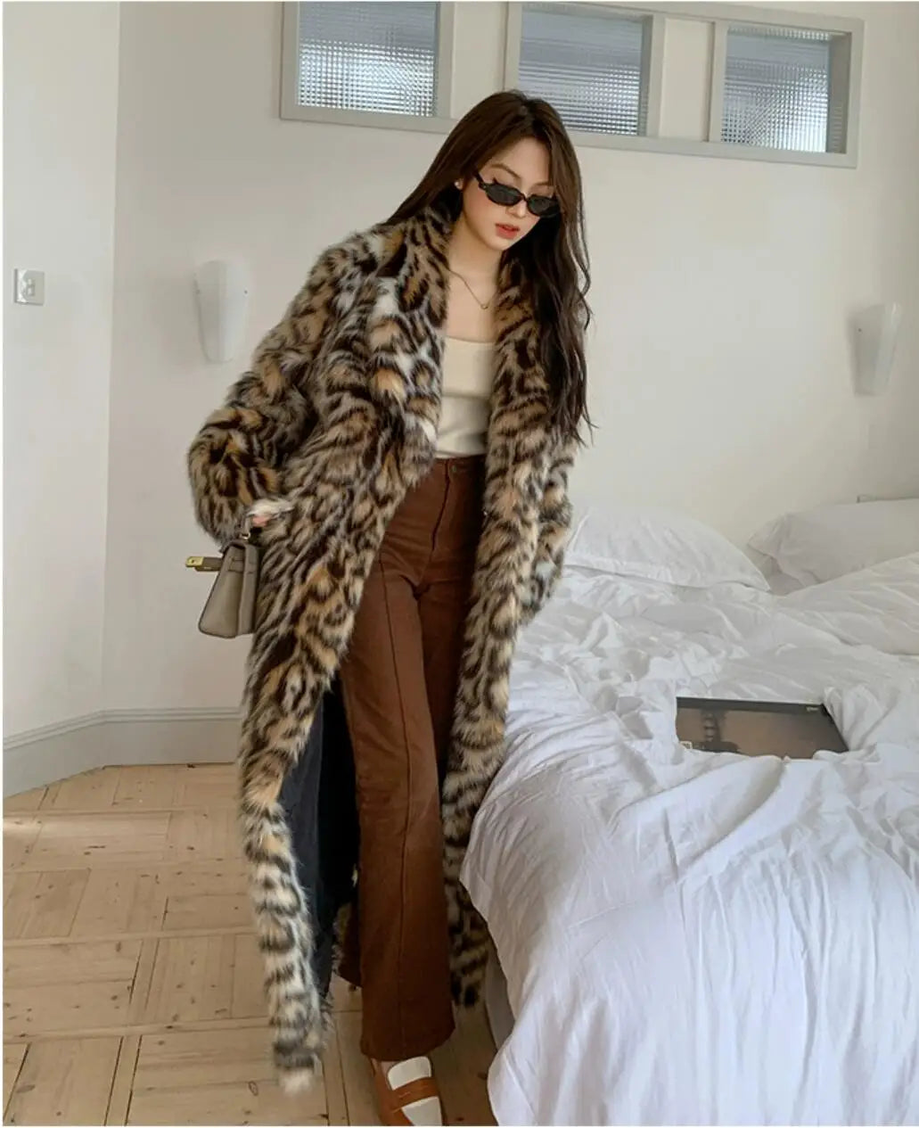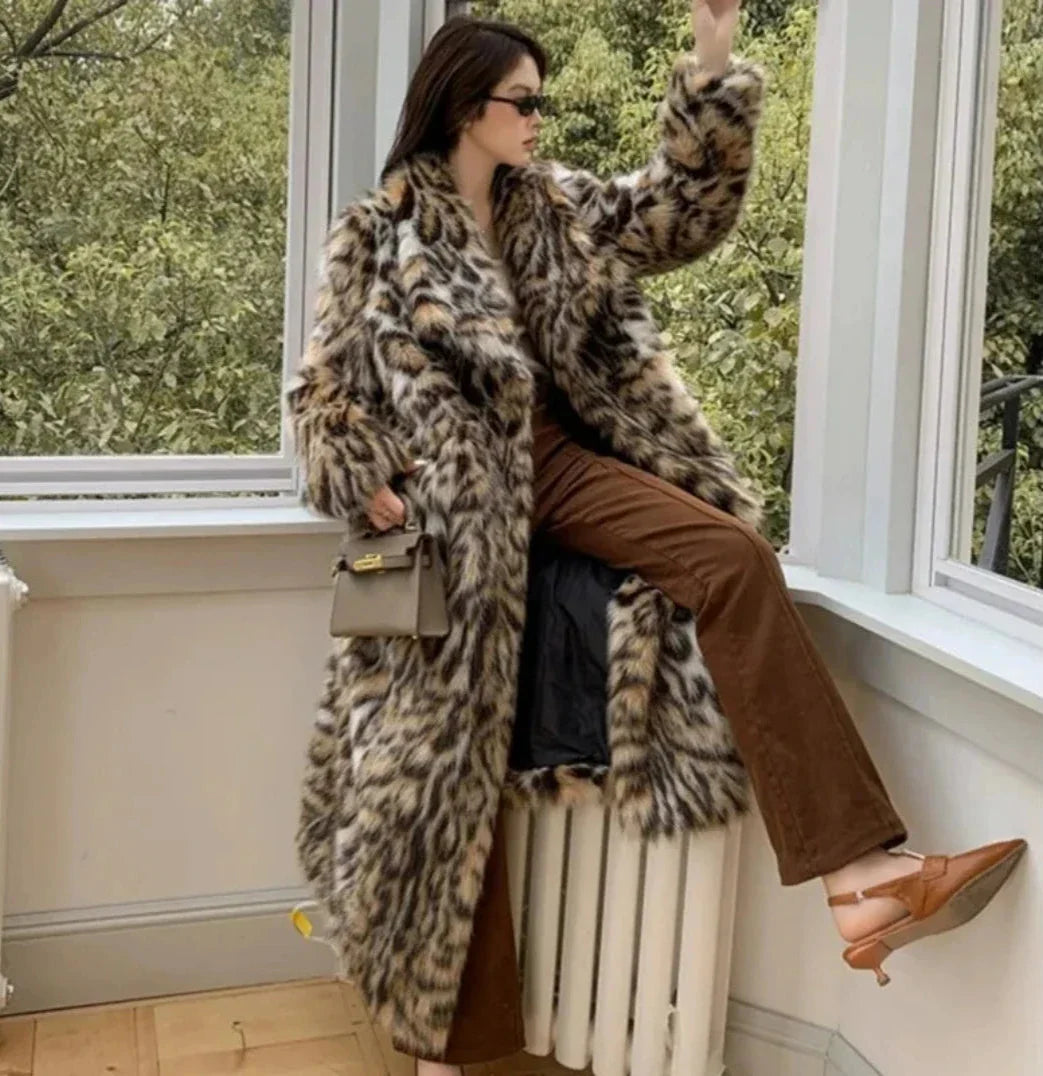 Women's Cozy Full-Length Faux Fur Cheetah Coat
