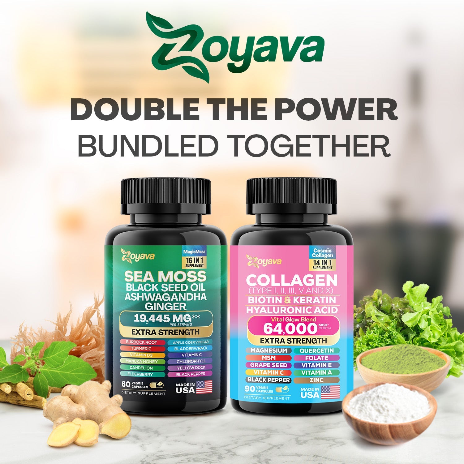 Zoyava™ Revitalize Your Radiance & Wellness: Sea Moss 16-in-1 Magic Moss & Cosmic Collagen Beauty Complex